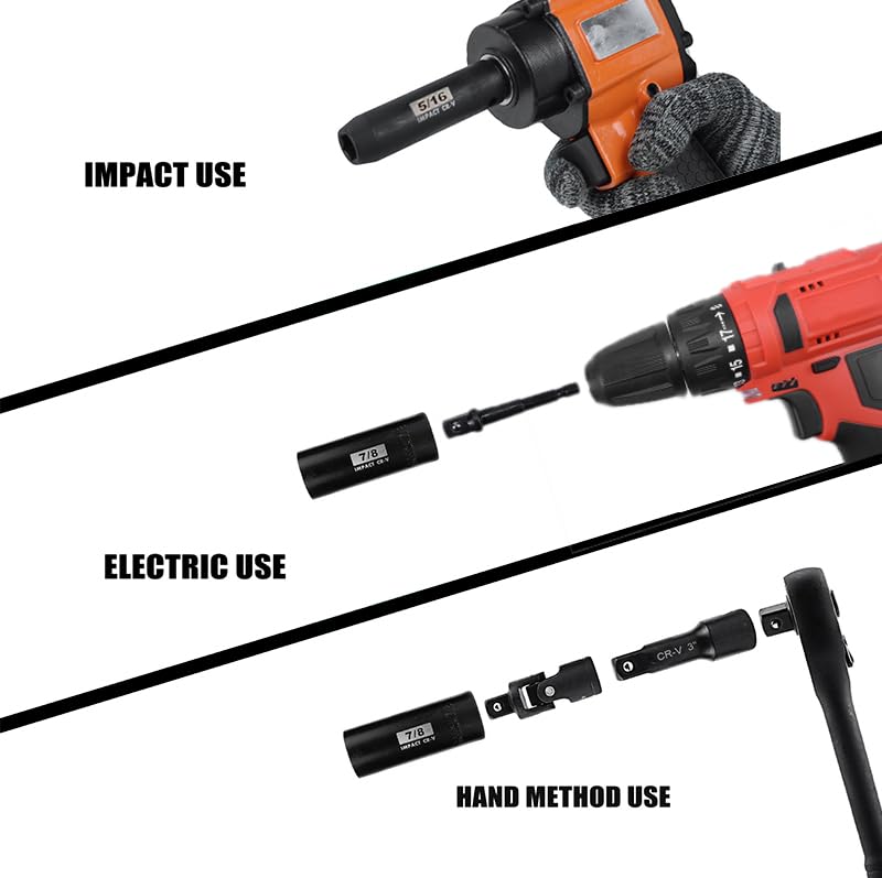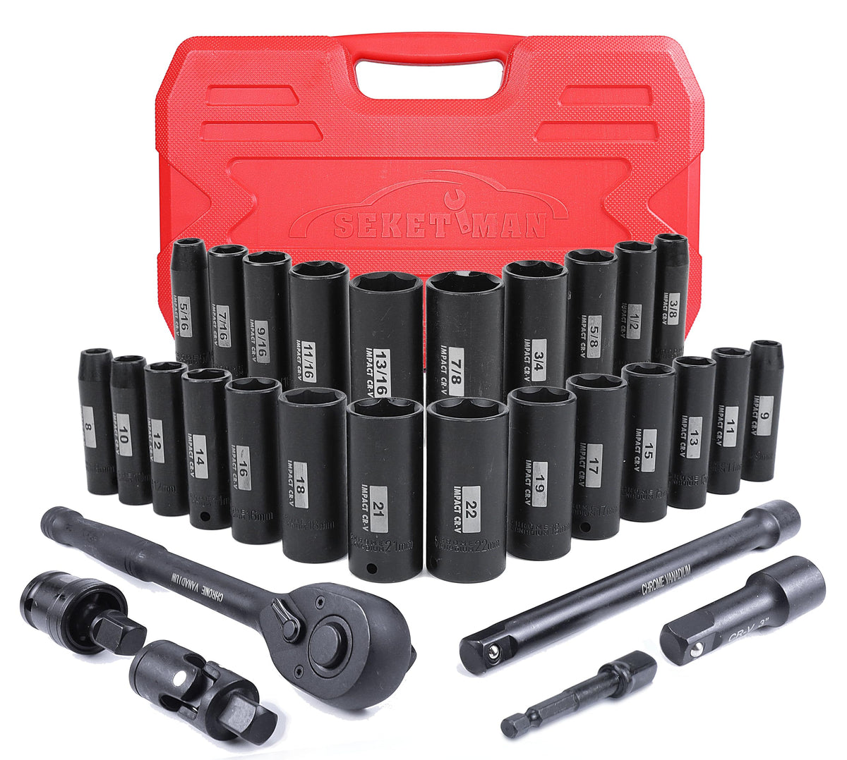 Q: Can I use the SEKETMAN socket set with impact drivers?A: Yes, the SEKETMAN Impact Socket Set is specifically engineered for use with impact drivers. Its high-torque, 6-point design grips the flat sides of fasteners securely, preventing rounding and allowing for efficient use.