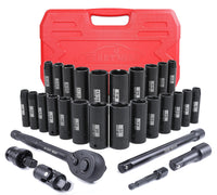 Seketman 30Pcs 3/8 Inch Impact Socket Set,Deep Socket Set,Metric/Sae,(5/16"-7/8",8Mm-22Mm),Cr-V Steel,Includes Extension Bar,Universal Joint And Ratchet Handle.