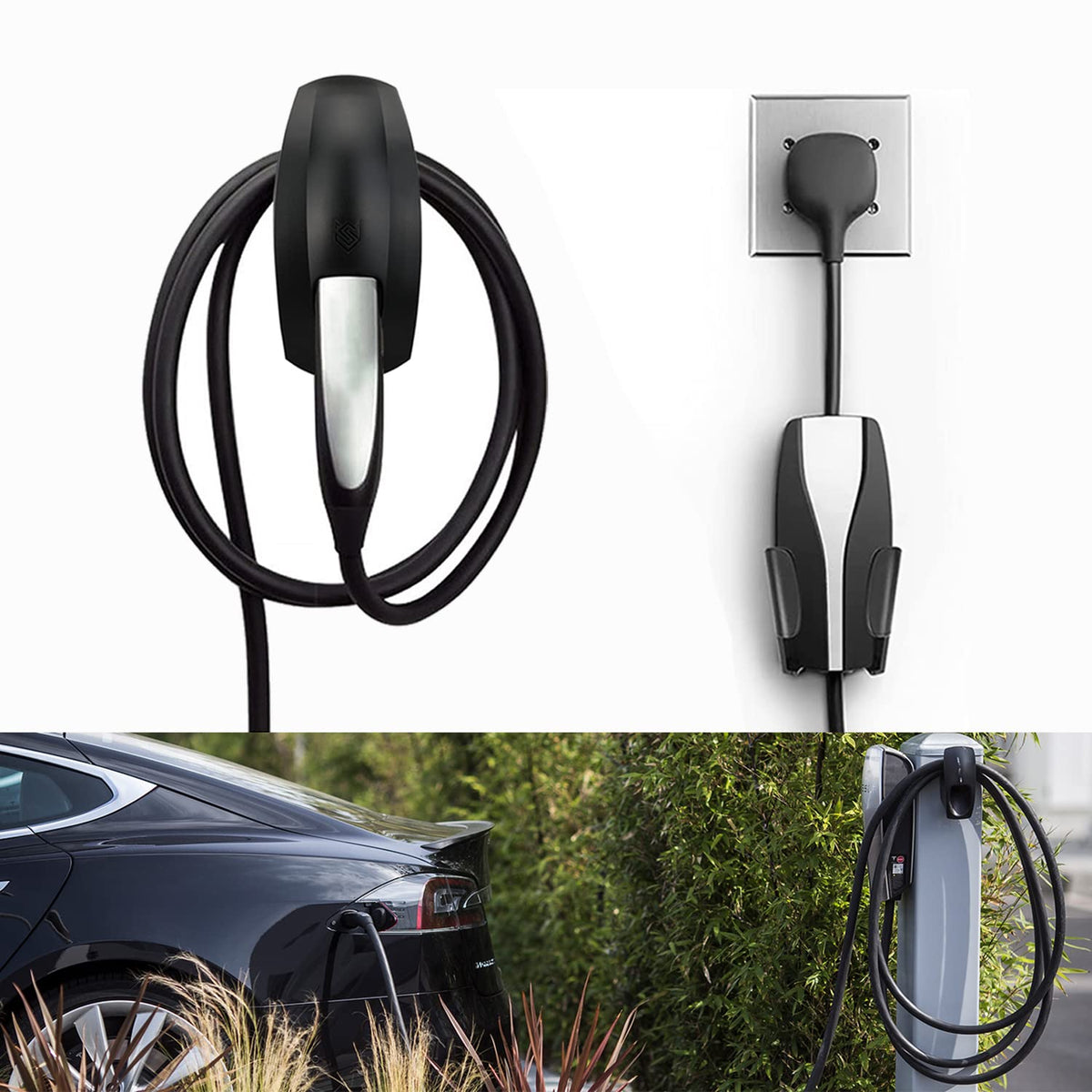 Q: Can the charging cable holder support the weight of the Tesla charging cable?A: Absolutely! The Seven Sparta Charging Cable Holder is sturdy enough to hold the weight of the Tesla charging cable coiled around it, ensuring that your cables stay organized and off the ground.