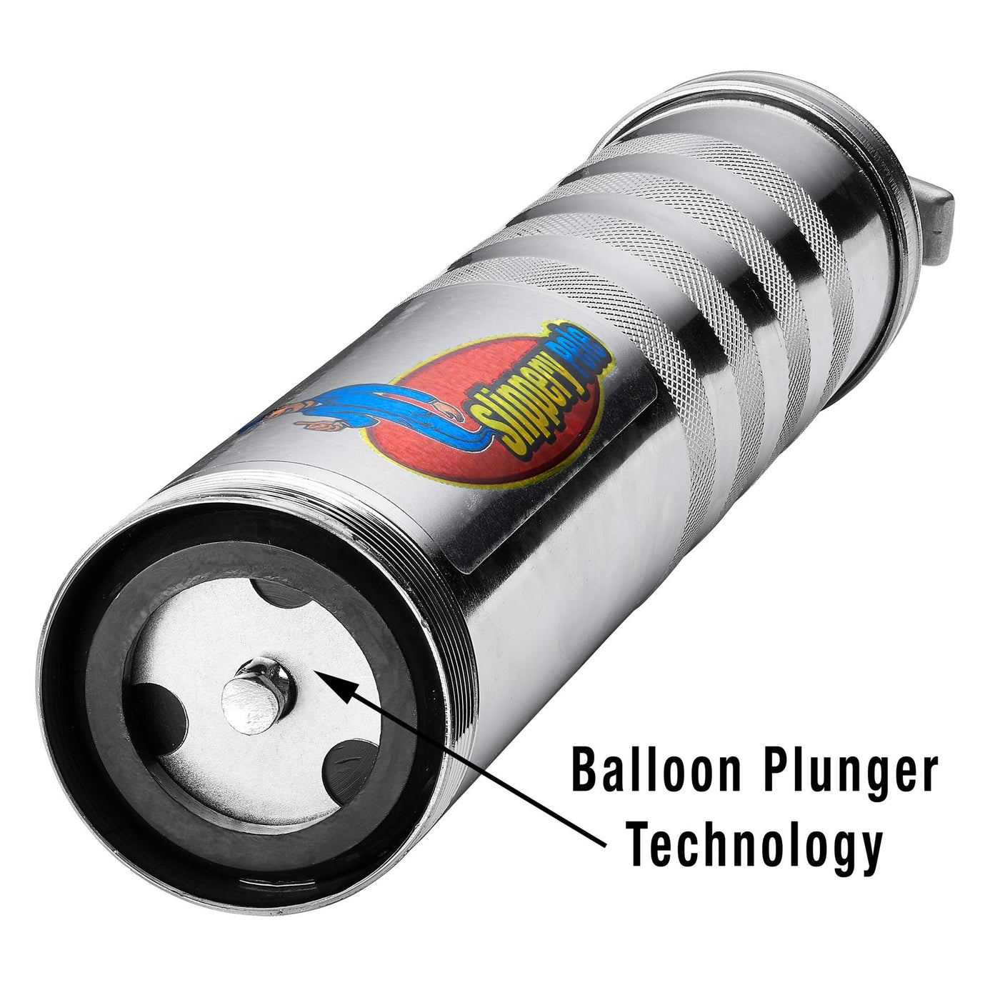 Q: What is Balloon Punger Technology and how does it benefit my grease gun usage?A: Balloon Punger Technology allows the grease cartridge to be emptied completely, minimizing waste. Unlike standard plungers, it ensures that virtually no grease is left in the tube, making your grease gun more efficient and cost-effective.