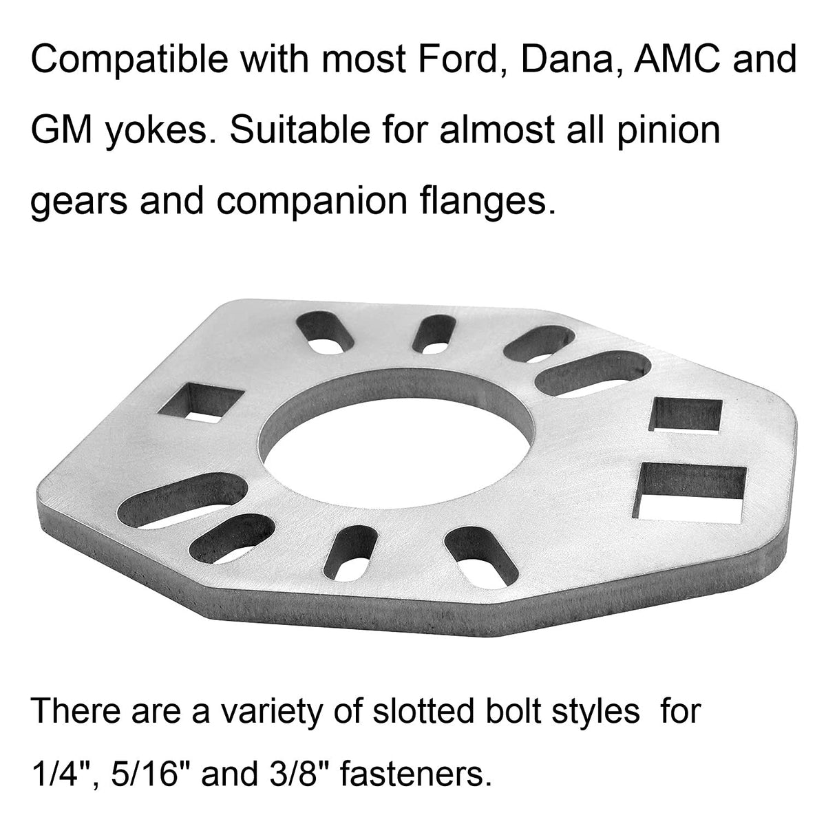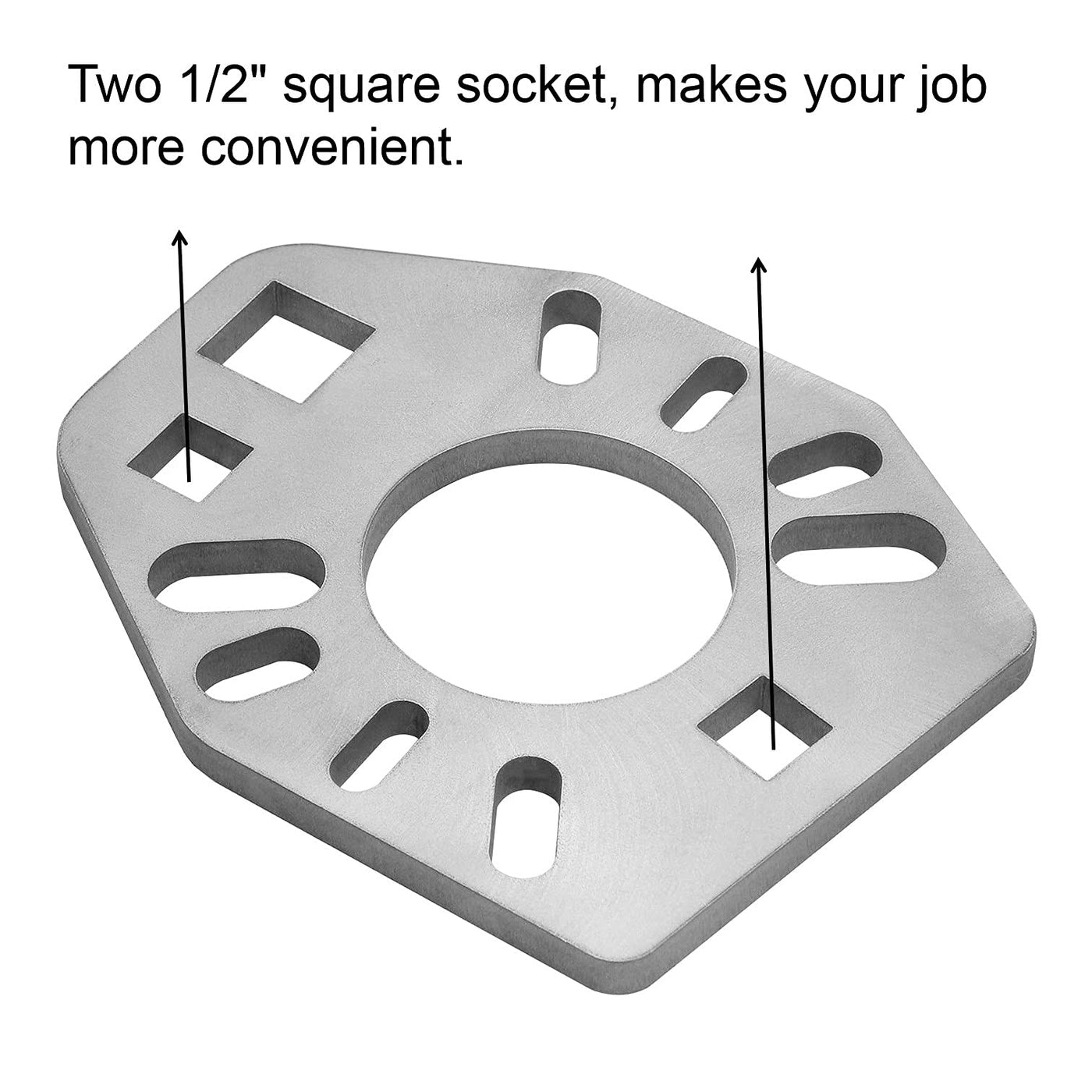 ----------- A Pinion Yoke Wrench Tool For Getting Your Job Easier ------------ Fitment:&Nbsp; Compatible With Most Ford, Dana, Amc And Gm Yokes. Suitable For Almost All Pinion Gears And Companion Flanges. Material: Stainless Steel Color: Silver Sophisticated Design: Two 1/2'' Square Socket Size: Please Refer To Our Second Picture For More Size Detail Information. (Please Understand The Subtle Differences In The Measurement Process) Using This Tool Can Be Used To Handle The Crazy Torque Required To Complete The Job, It Can Also Handle Other High Torque Tasks, Such As Squeezing Sleeves.&Nbsp; Use A Pinion Wrench While Applying Torque. It Can Even Help You Loosen The Most Stubborn Pinion Nut.