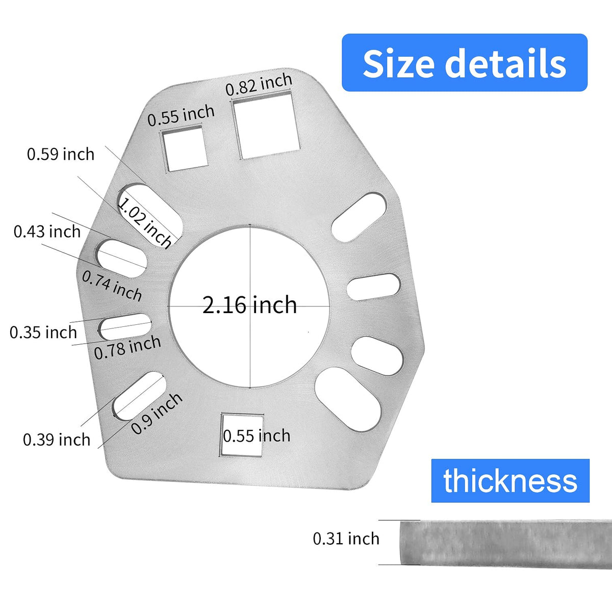 Q: Are there any specific size details I should be aware of?A: Yes, the wrench accommodates various slotted bolt styles for 1/4", 5/16", and 3/8" fasteners. The center socket hole measures 2 inches. For more detailed size information, please refer to the second picture provided in the listing.
