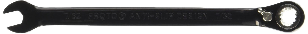 Product Description Wrenches, Ratcheting Combination Wrench, Ratcheting Configuration Open And Box End, Double End, Reversing Yes, Box End Style Spline, Sae, Wrench Head Sizes 7/32 In. X 7, 12, Overall Length 5 In., Finish Black Chrome, Vanadium Steel, Insulated No, Standard Tool Accessory Needed For Tethering, Offset 15 Degrees , Head Movement Fixed, Wrench Shape Straight, Asme Stanley Proto Combination Wrenches Are Engineered To Be More Efficient And Stronger Than Ever. Proto Engineers Continually Work To Create Wrenches That Grip Tighter And Let Users Apply More Torque Without Fear Of Fastener Damage. All Are Coated Or Plated To Be Durable And Corrosion Resistant. From The Manufacturer Stanley Proto Combination Wrenches Are Engineered To Be More Efficient And Stronger Than Ever. Proto Engineers Continually Work To Create Wrenches That Grip Tighter And Let Users Apply More Torque Without Fear Of Fastener Damage. All Are Coated Or Plated To Be Durable And Corrosion Resistant.