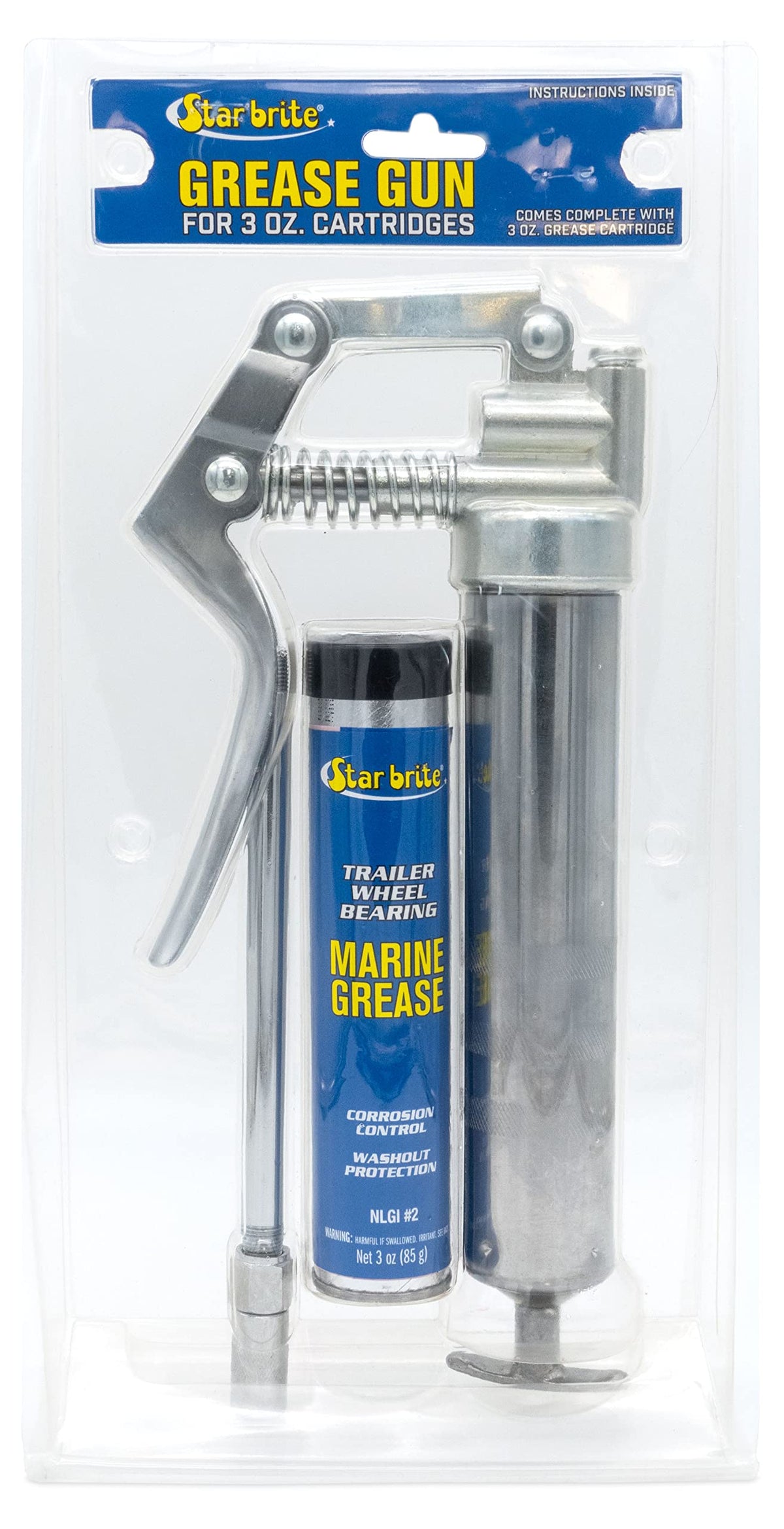 Q: What materials are used in the construction of the STAR BRITE Grease Gun?A: The STAR BRITE Grease Gun is built with heavy-duty aluminum construction, ensuring durability and reliable service for years, making it a trusted choice for marine and automotive lubrication.