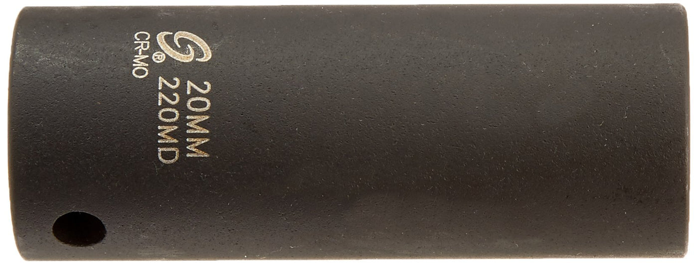 Q: What materials are used in the Sunex 220md 20-mm Deep Impact Socket?A: The Sunex 220md 20-mm Deep Impact Socket is forged from high-quality chrome molybdenum alloy steel, which is renowned for its strength and durability, making it ideal for tough jobs.