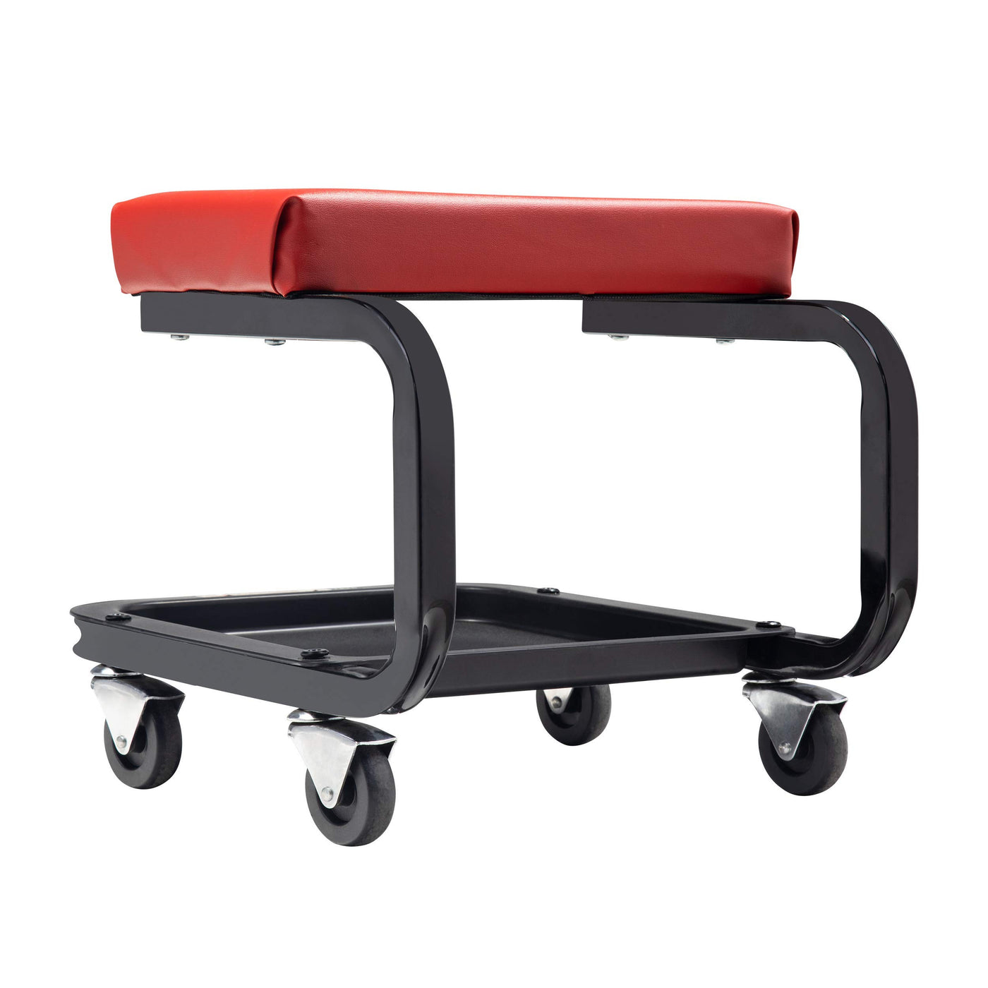 Q: What kind of material is used for the Sunex 8507 Creeper Seat?A: The seat features a cushioned red vinyl cover for comfort and a powder-coated black metal frame for strength and stability.
