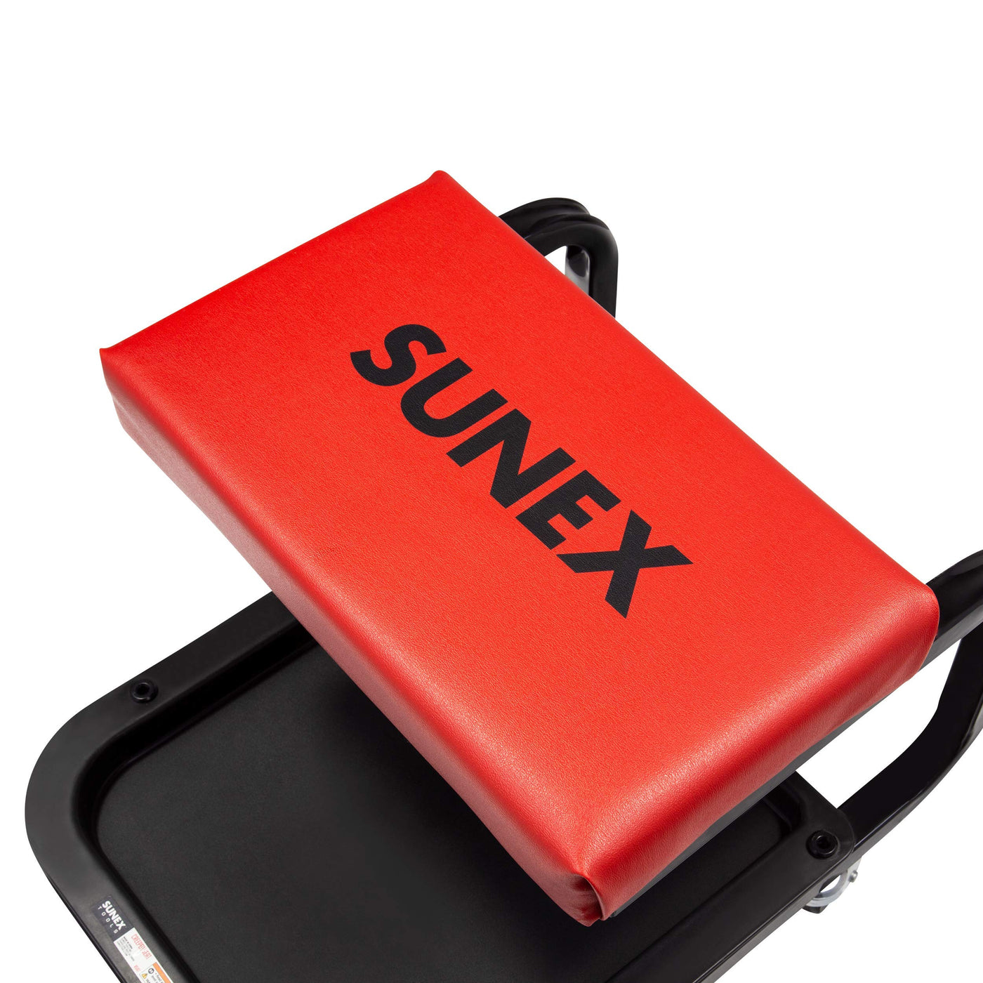 Q: Does the Sunex 8507 Creeper Seat include any storage options?A: Yes, it comes with a convenient 1-inch deep parts tray measuring 11.5 inches by 12.5 inches, allowing you to keep tools and parts organized while you work.