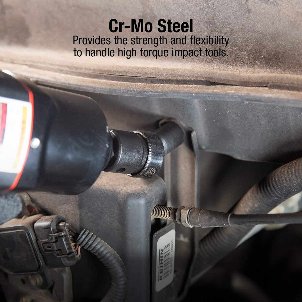 Q: What materials are used in the construction of this impact socket set?A: This impact socket set is made from CR-MO alloy steel, which provides exceptional strength and durability, allowing it to withstand high torque applications.