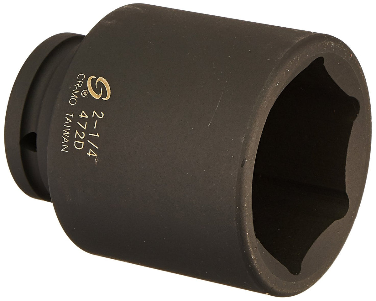 Q: What size is the SUNEX TOOLS 472d impact socket?A: The SUNEX TOOLS 472d is a 2-1/4-inch deep impact socket with a 3/4-inch drive, making it suitable for a wide range of applications.