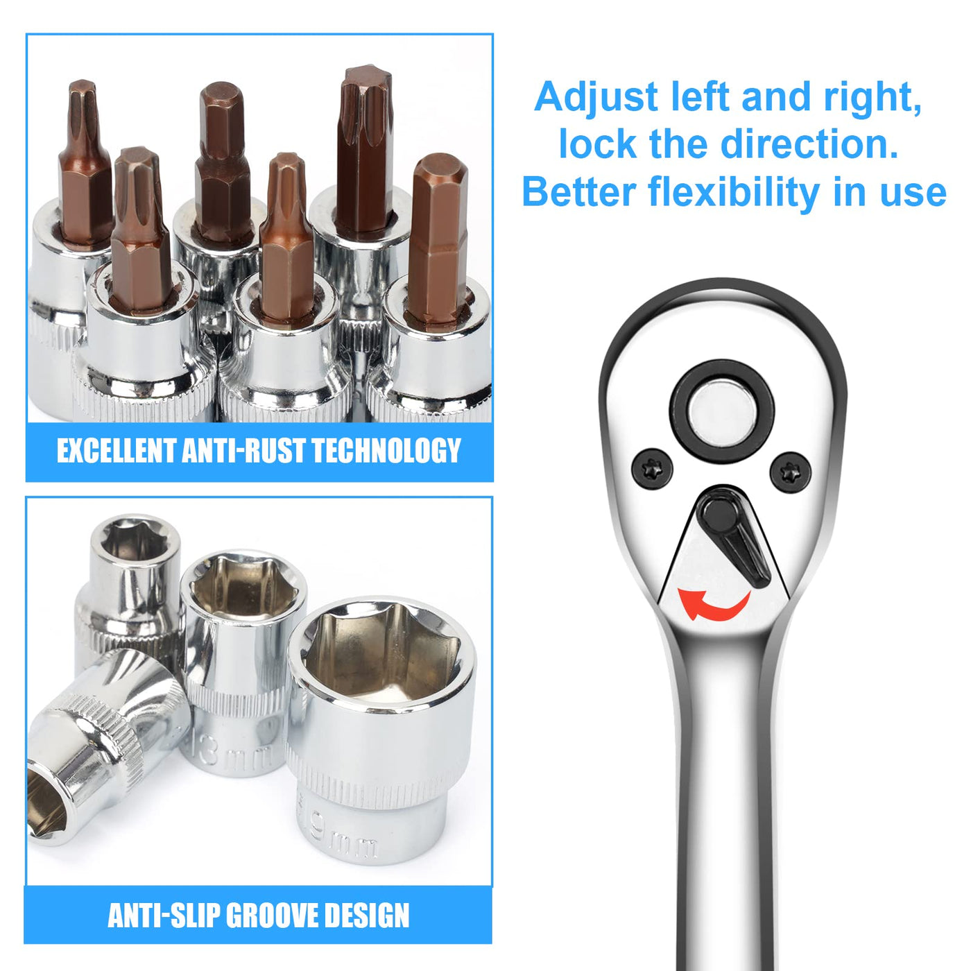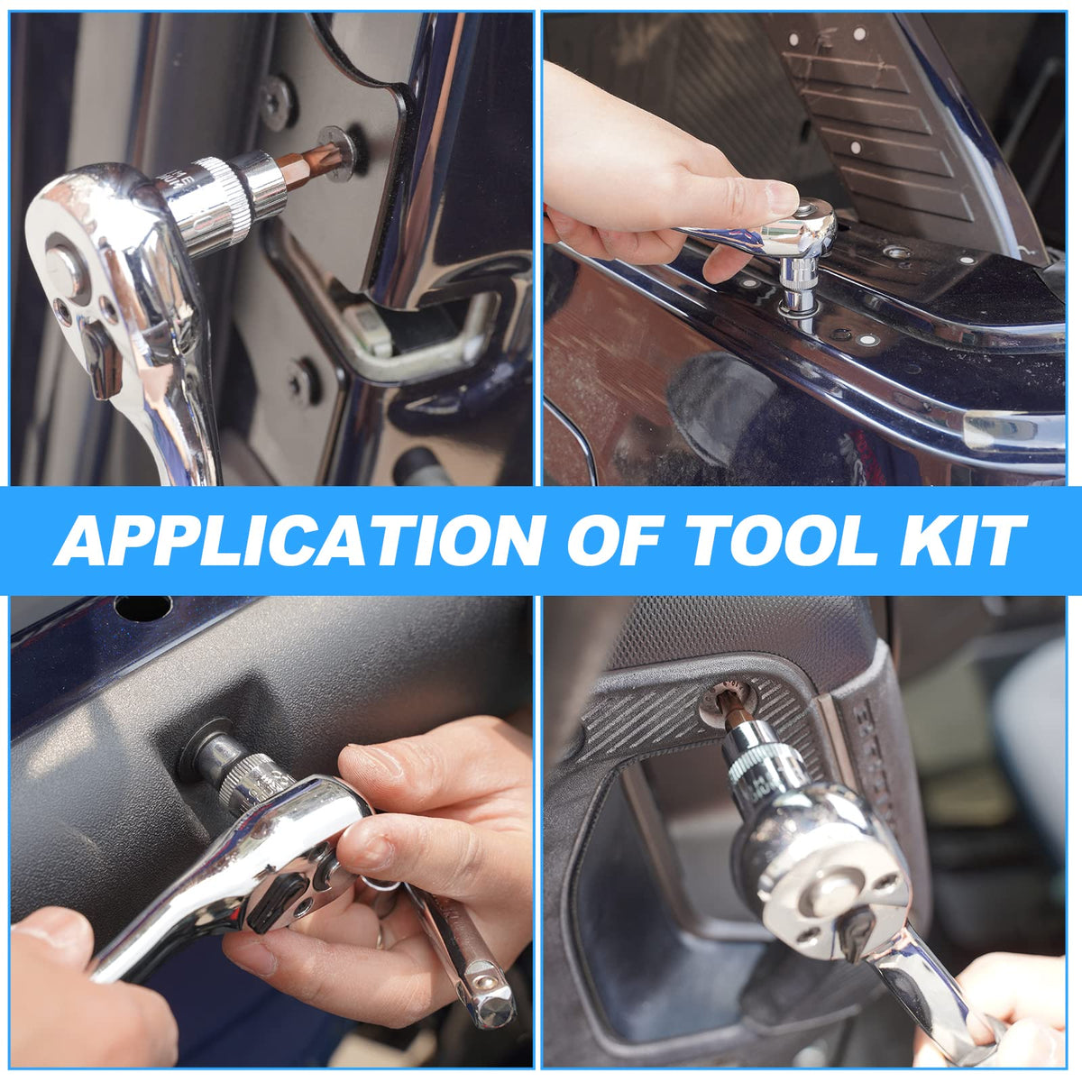 Q: How does the design of the ratchet improve usability?A: The bent handle design of the ratchet provides improved torque and more swing room for the Torx bits, making it safer and more efficient for mounting and dismounting Bronco tops and doors.