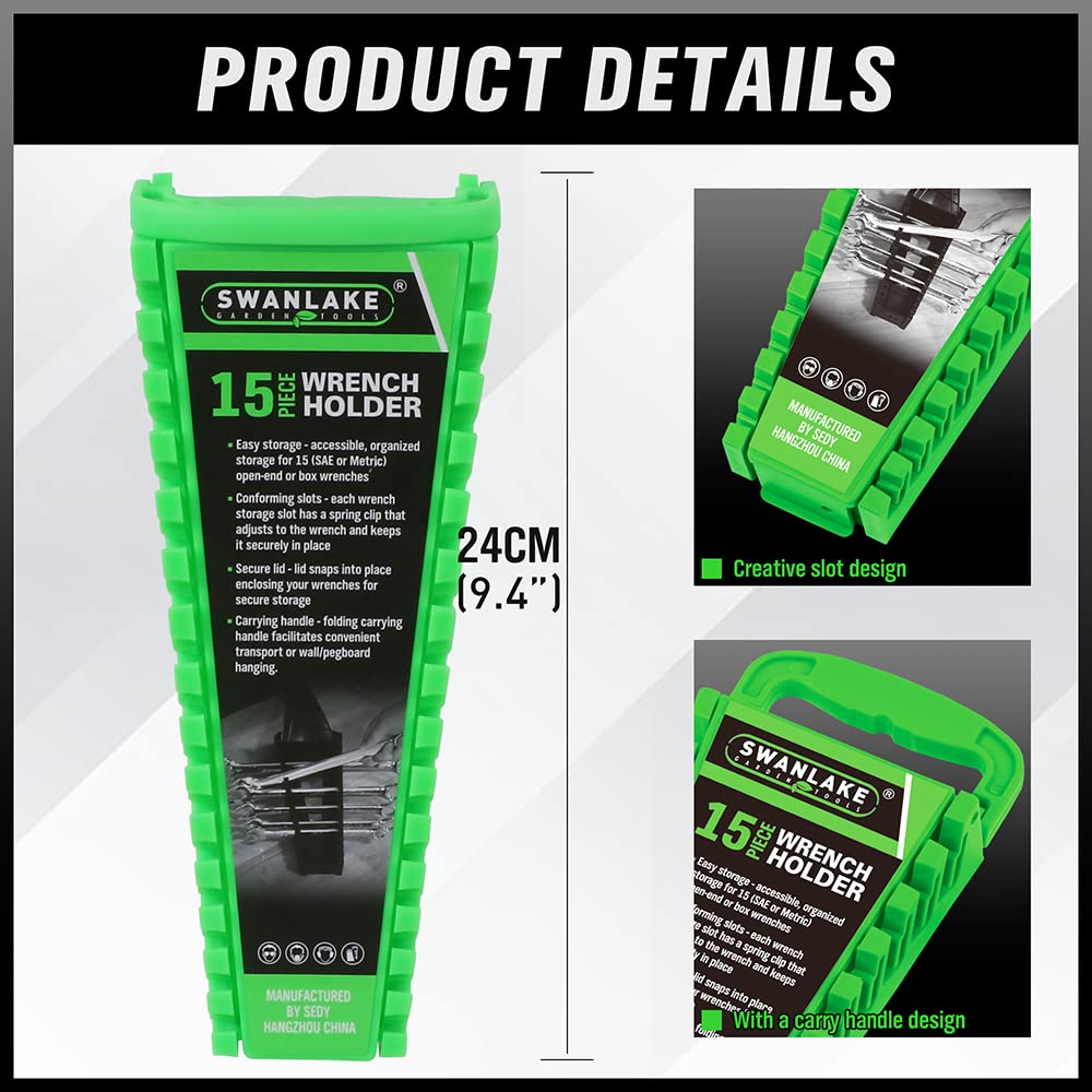 Q: What material is the SWANLAKE Wrench Holder made from?A: The SWANLAKE Wrench Holder is made from high-quality plastic, ensuring durability and longevity for storing your tools securely.