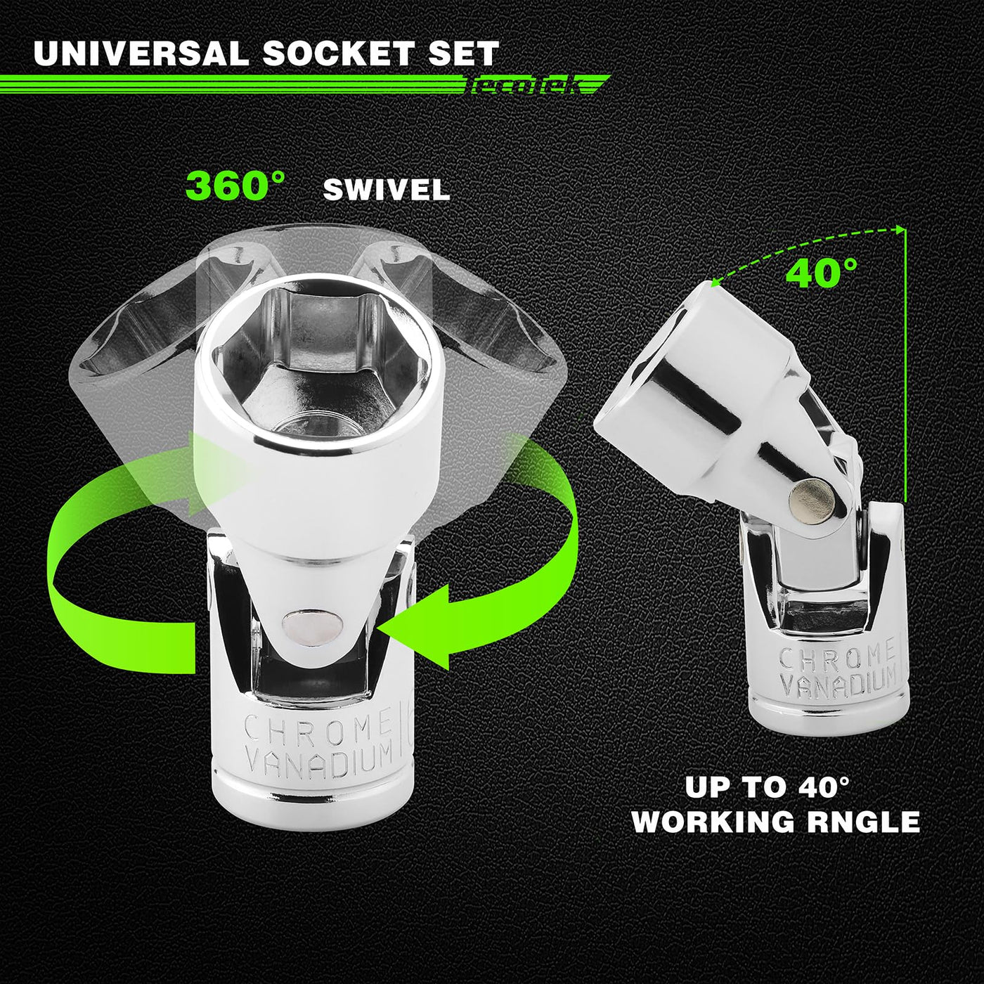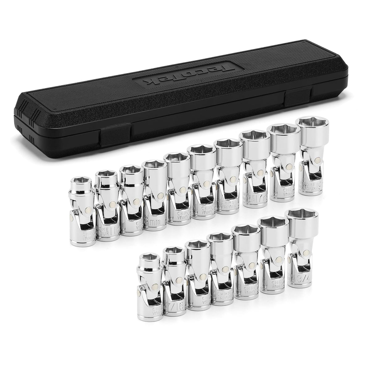 Tecotek 17-Piece 3/8-Inch Drive Universal Joint Socket Set, Swivel Socket Set, 6-Point, Sae (3/8' To 3/4') And Metric (10Mm To 19Mm), Cr-V, Universal Flex Socket For Easier Access To Tight Spaces