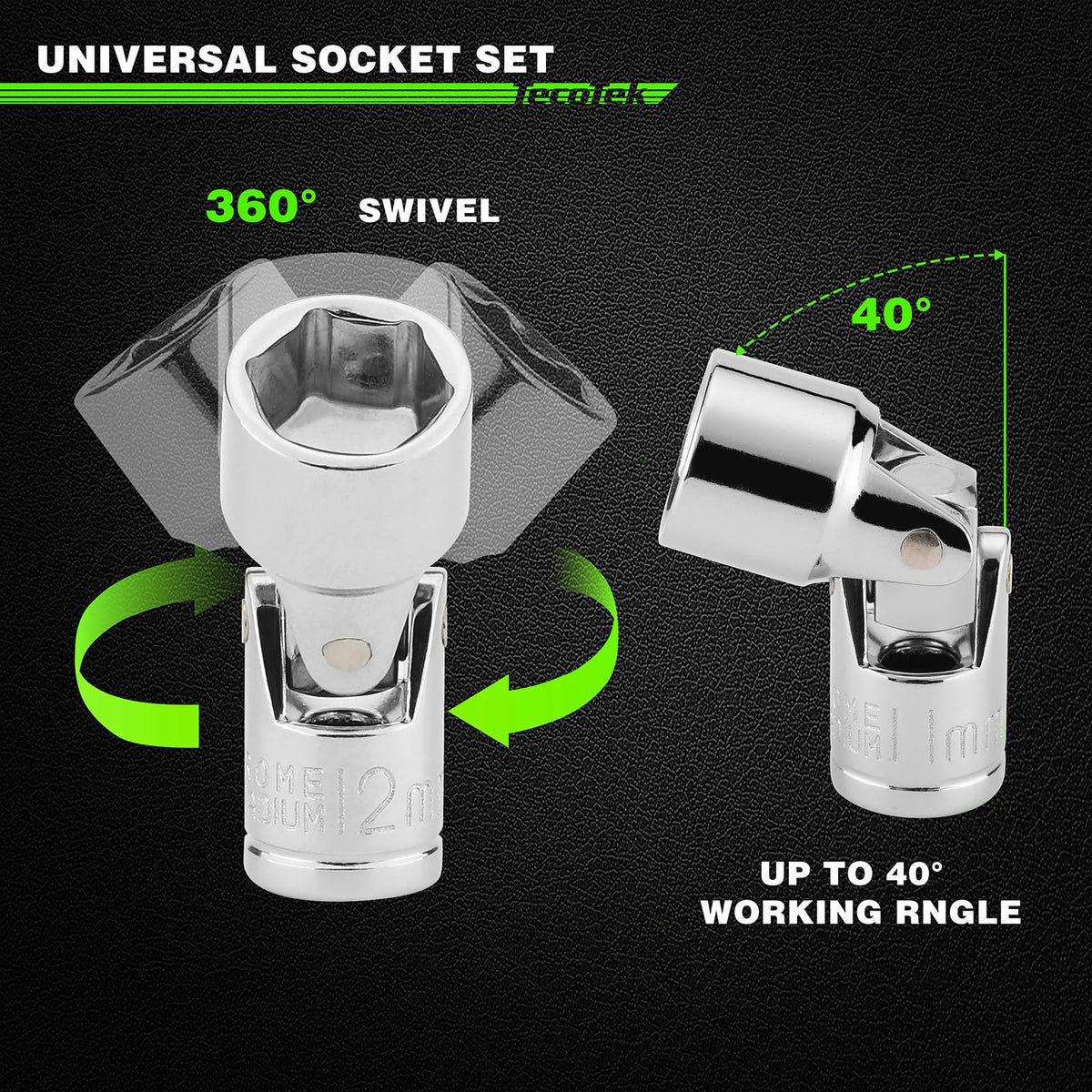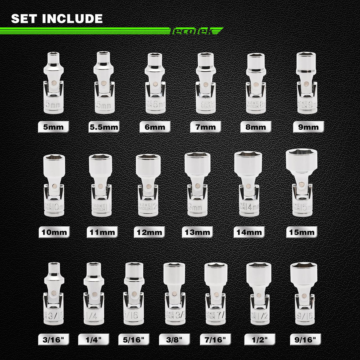 Tecotek 19-Piece 1/4-Inch Drive Universal Joint Socket Set, Swivel Socket Set, 6-Point, Sae (3/16' To 9/16') And Metric (5Mm To 15Mm), Cr-V, Universal Flex Socket For Easier Access To Tight Spaces