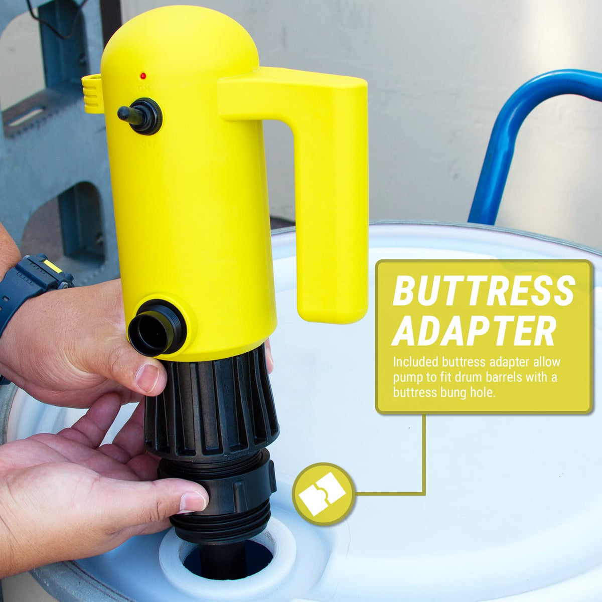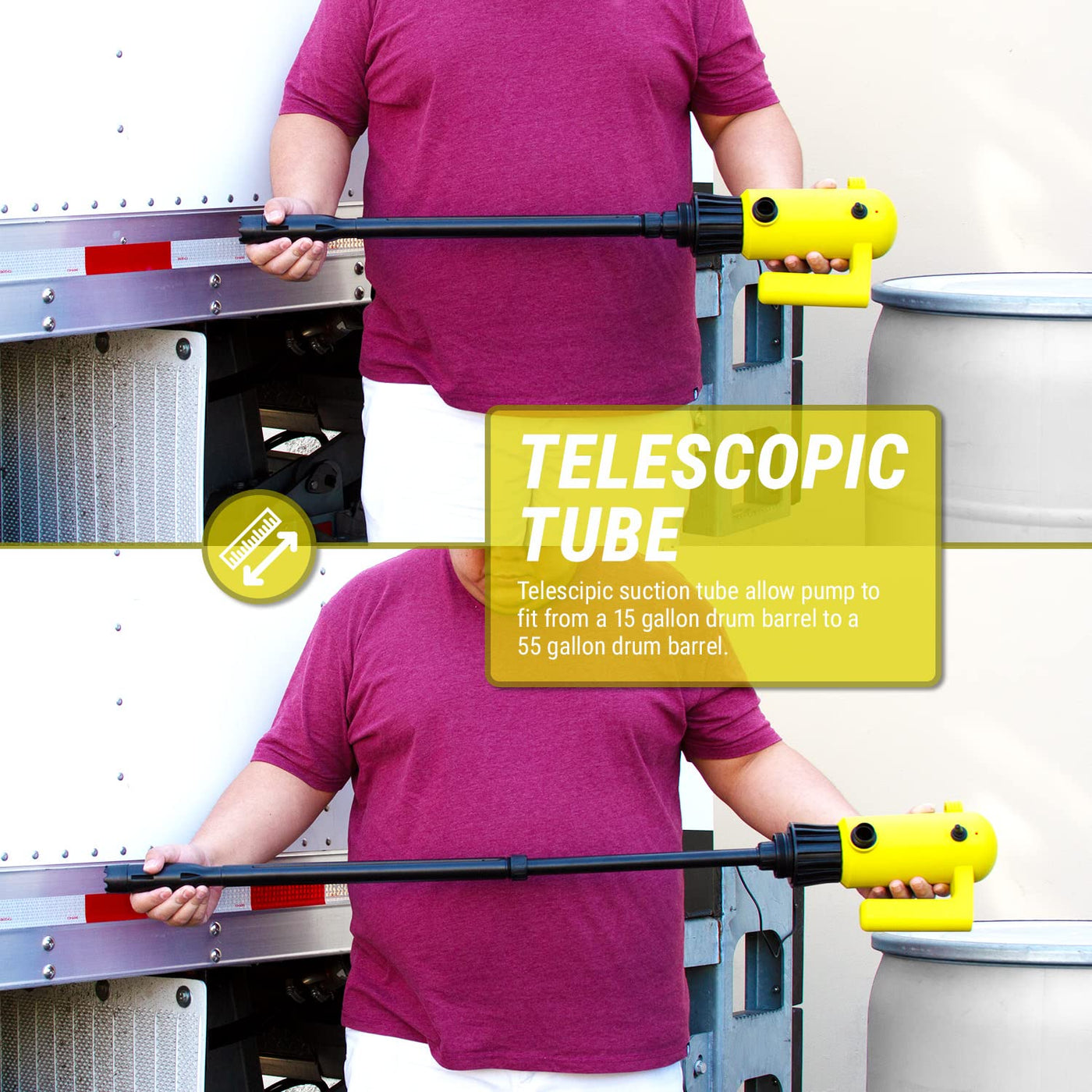 Tredrume - Telescopic Electric Drum Pump - Light Duty. Delivery Volume Of 4. 2 Gallon Per Minute ( 16 Liters Per Minute ) / Buttress Adapter And Drum Bung Adapter Included. Electric Drum Pump For 15, 30 And 55 Gallon Drums With Telescopic Suction Pipe ( 1. 9 Feet To 2. 8 Feet ) And Full Control Nozzle.