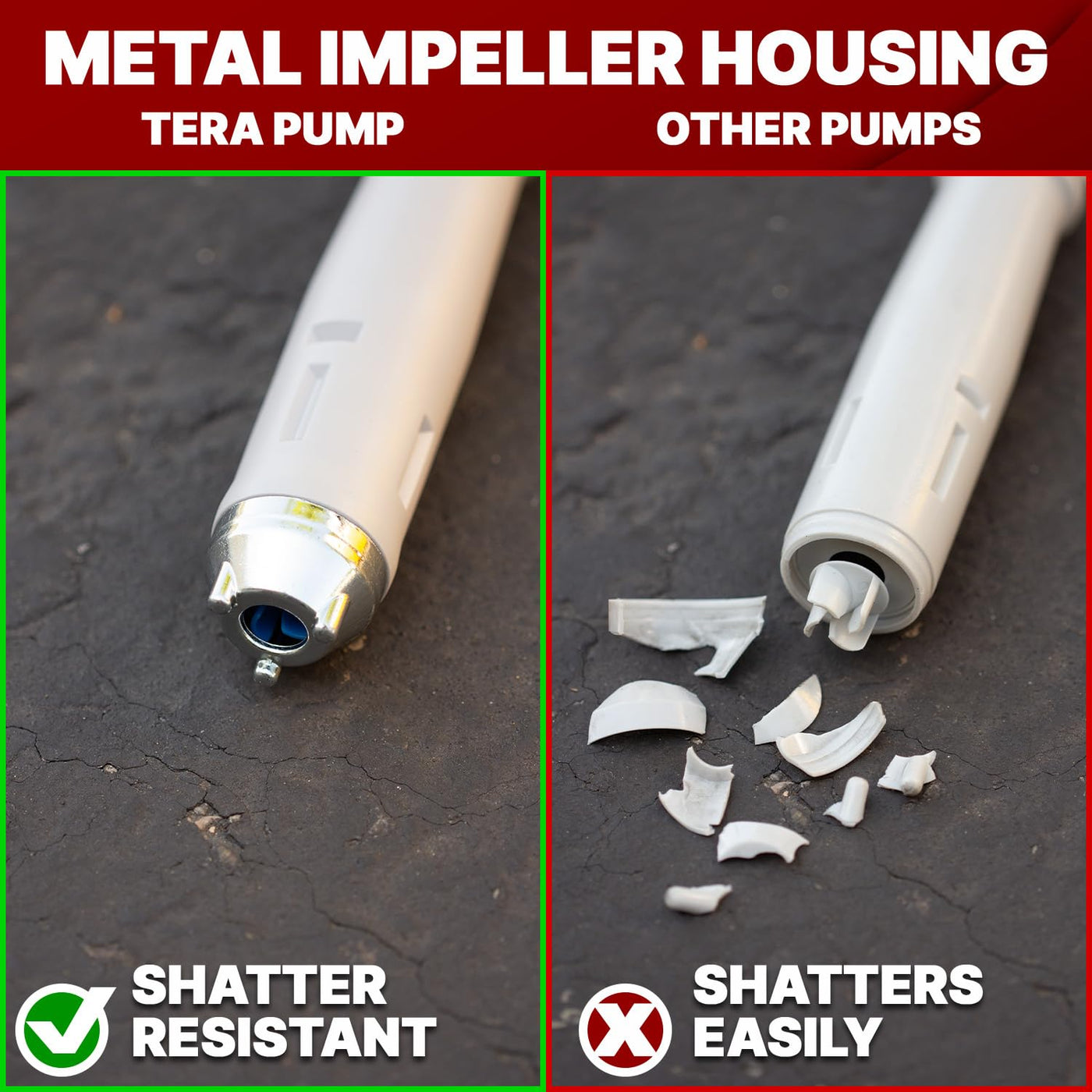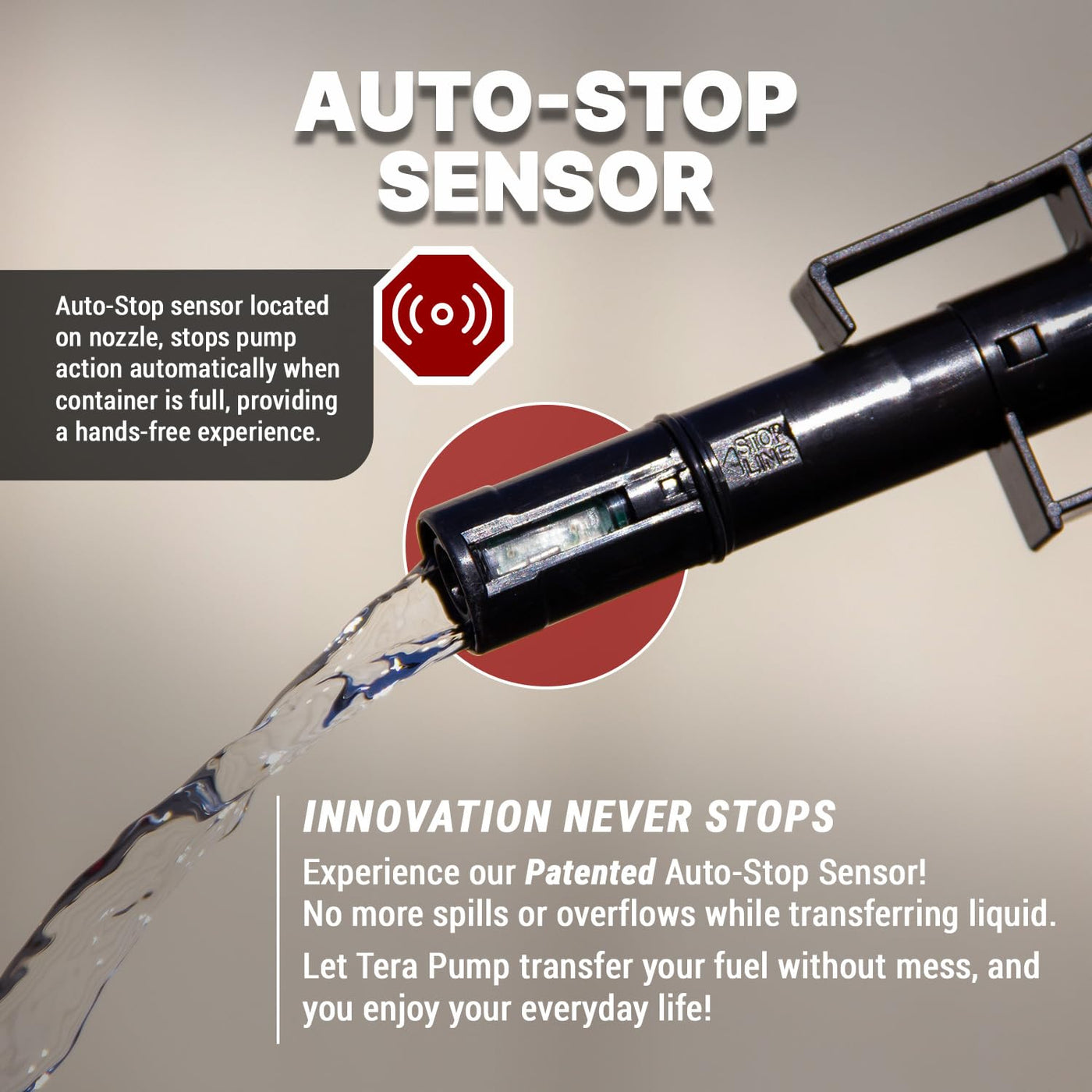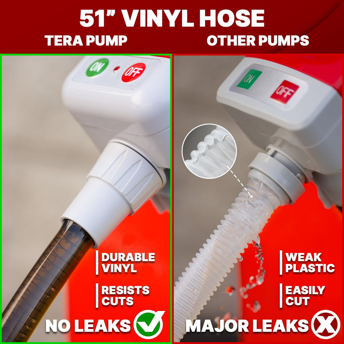 TERA PUMP Battery Powered On/Off Switch Fuel Transfer Pump for Gas and Diesel with 51.2 Strong Vinyl Hose, Auto-Stop Sensor No