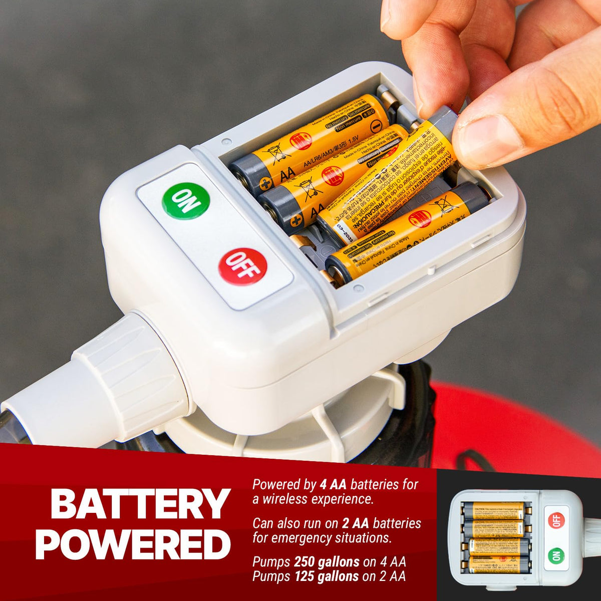 TERA PUMP TRFA01-XL 2nd Gen. Battery Powered Overfill Protection Fuel Transfer Pump w/Universal Gas Can & Utility Jug Adapter, 4.27ft Vinyl Hose, 2.5 GPM for Gas Diesel E15 E85 Fuels