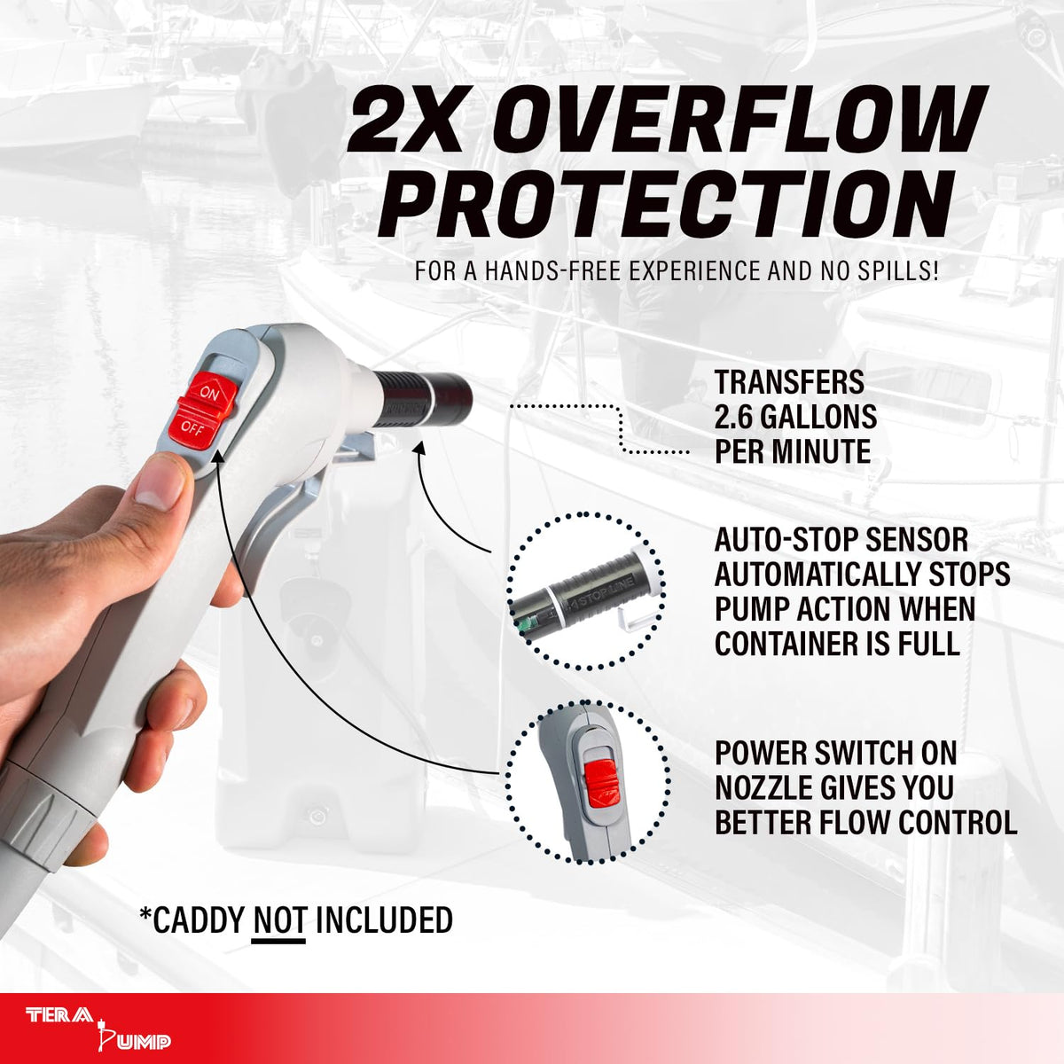 TERA PUMP TRFA03-GC Automatic Gas Caddy Fuel Transfer Pump w/Auto-Stop Sensor for Overfill protection [2.6 GPM] Fits 14-Gallon G