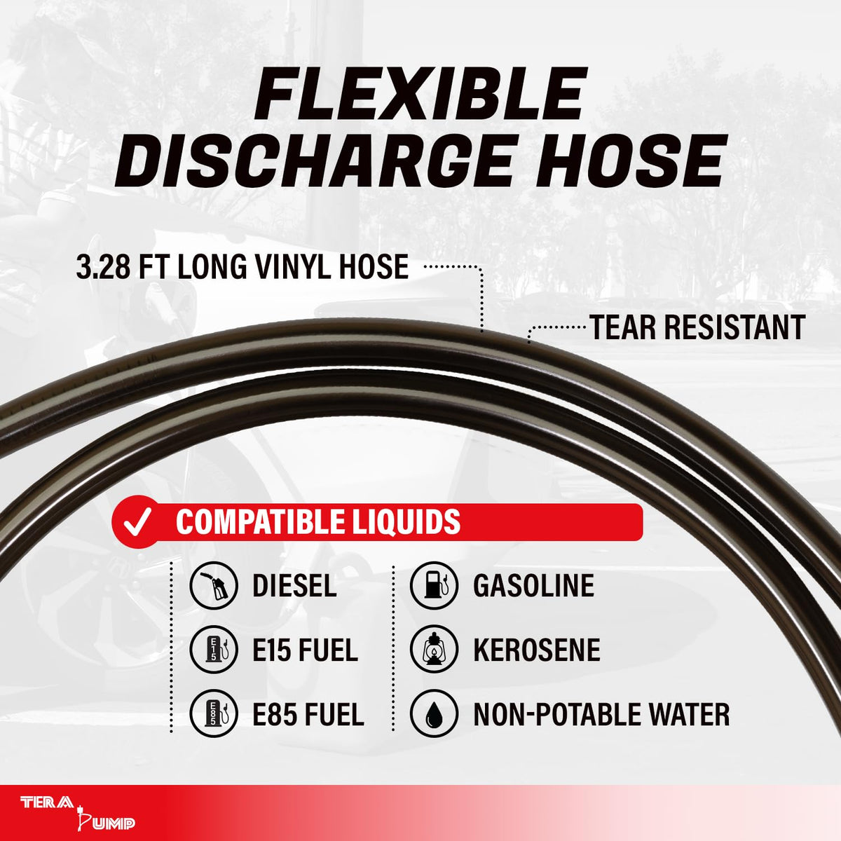 TERA PUMP TRFA03 Universal Gas Can Adapter Battery Powered Fuel Transfer Pump (2.6 GPM) No Spill Sensor, 3.28 ft Vinyl Hose, Pow
