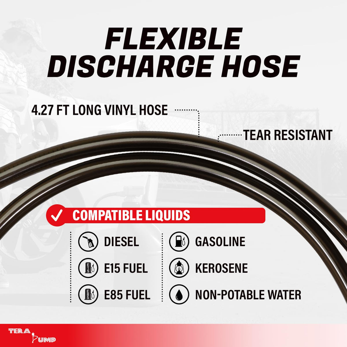 TERA PUMP TRFA03-XL Universal Gas Can Adapter Battery Powered Fuel Transfer Pump (2.3 GPM) No Spill Sensor, 4.27 ft Vinyl Hose,