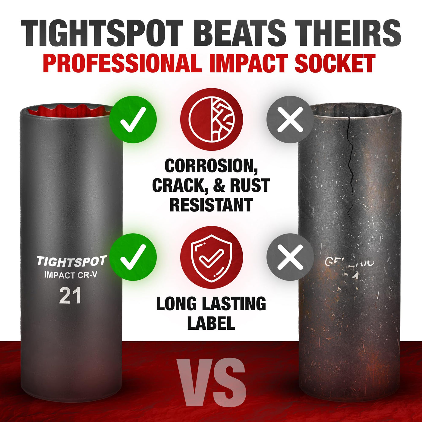 Tightspot 1/2 Inch Drive - 21 Mm Deep Impact Socket With Anti-Rounding 12 Point Design, Heat-Treated Crv Steel, Metric