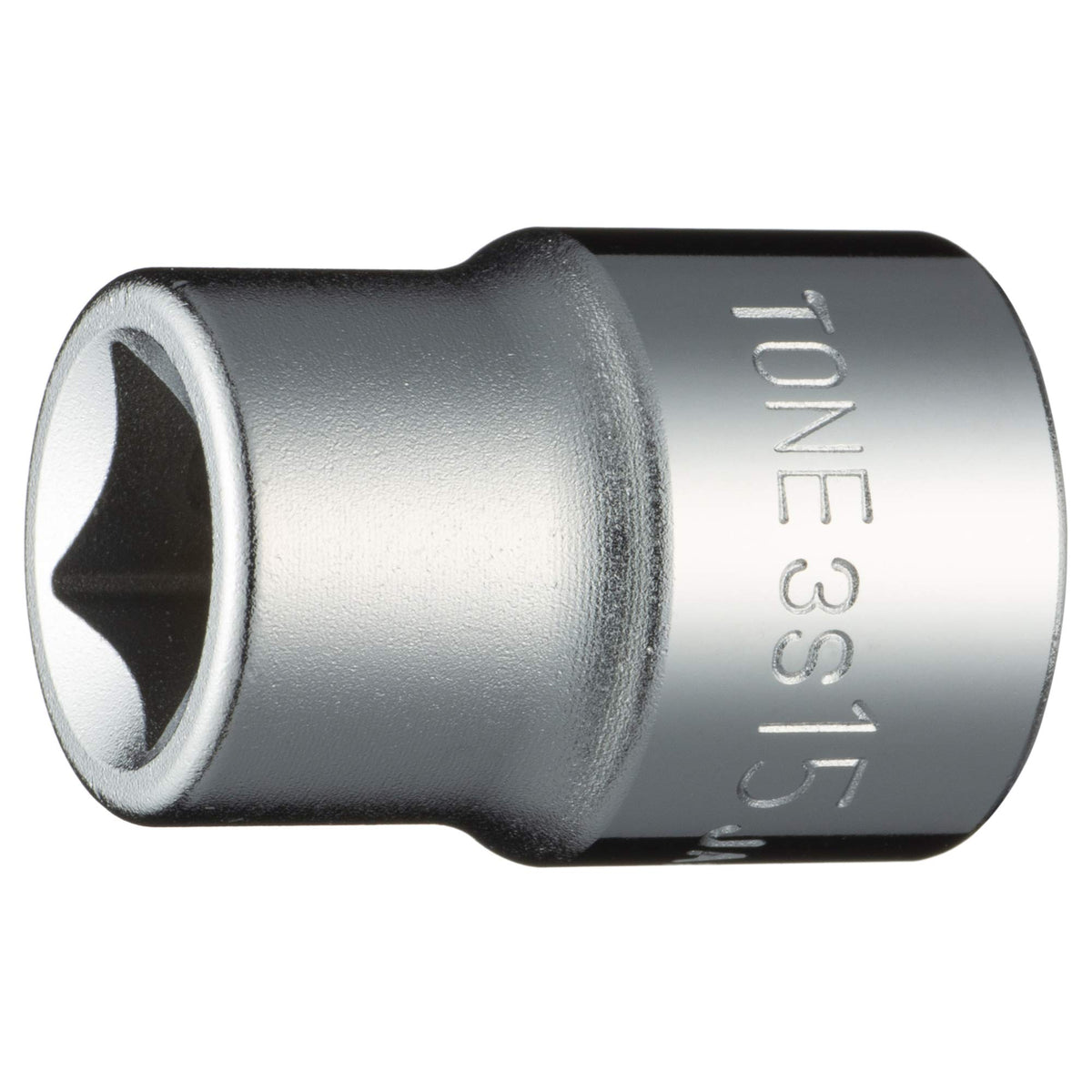 Q: What are the dimensions of the TONE Socket 6-Point 3S-15?A: The socket has an opposite side dimension of 0.6 inches (15 mm) and a total length of 1.1 inches (29 mm), making it compact and easy to handle.