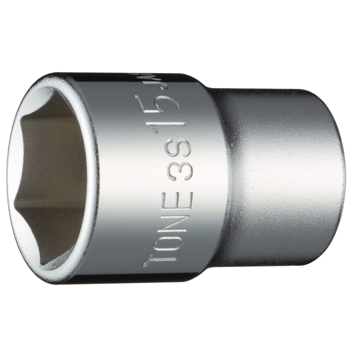 Q: What is the size and drive type of the TONE Socket 6-Point 3S-15?A: The TONE Socket 6-Point 3S-15 features a 3/8 inch drive with a 15mm hexagonal shape, making it suitable for various applications requiring a standard socket size.