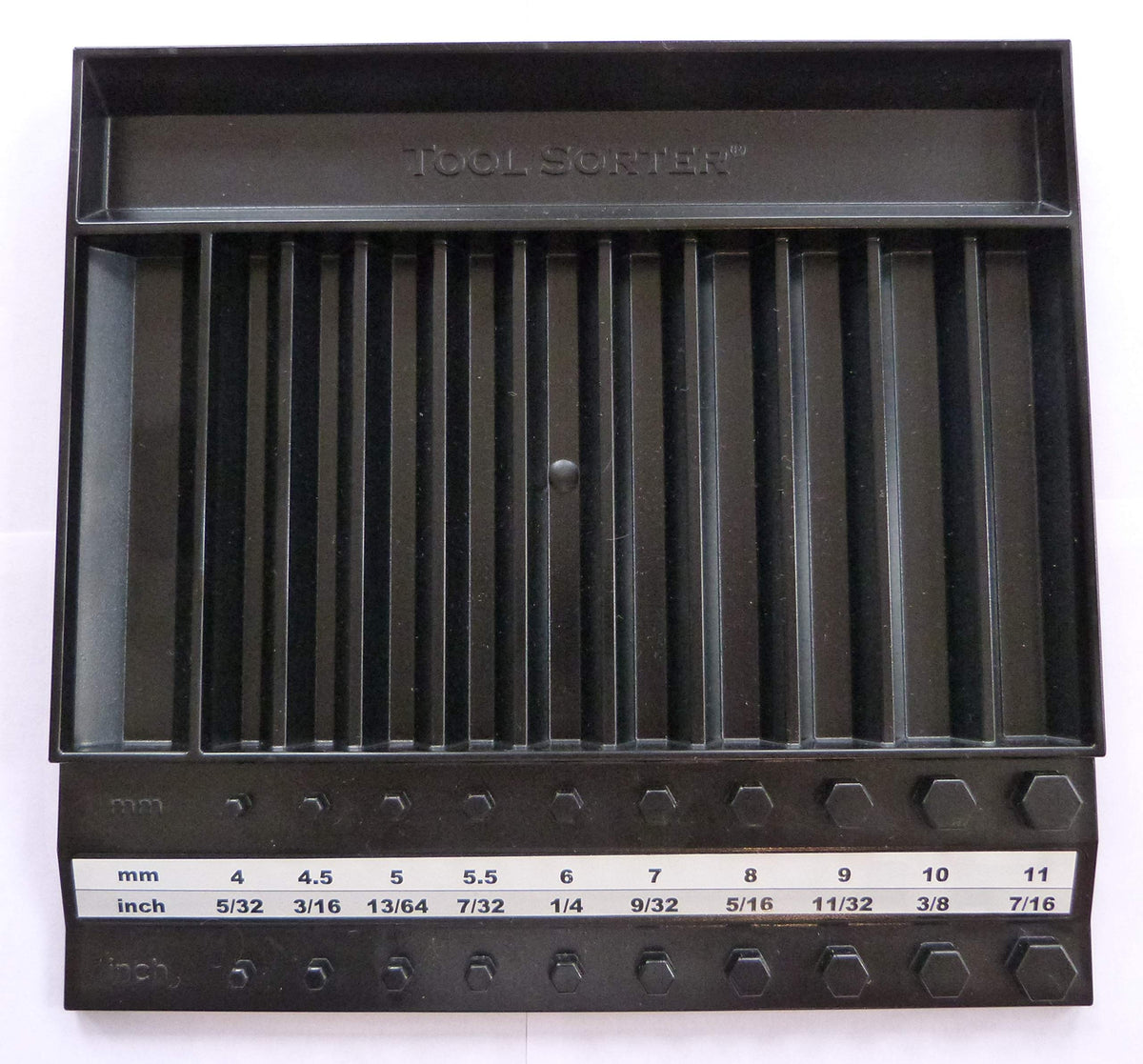 Q: What sizes of sockets does the TOOL SORTER SMALL SOCKET ORGANIZER accommodate?A: The TOOL SORTER SMALL SOCKET ORGANIZER is designed to hold sockets ranging from 5/32" to 7/16" and 4 mm to 11 mm, making it ideal for various small socket sizes.