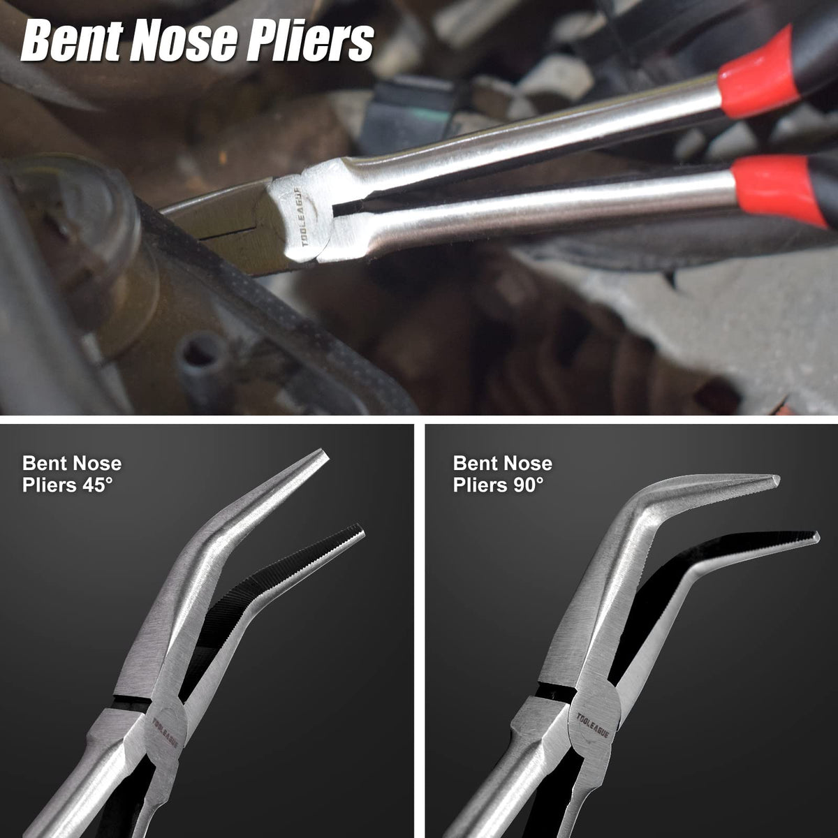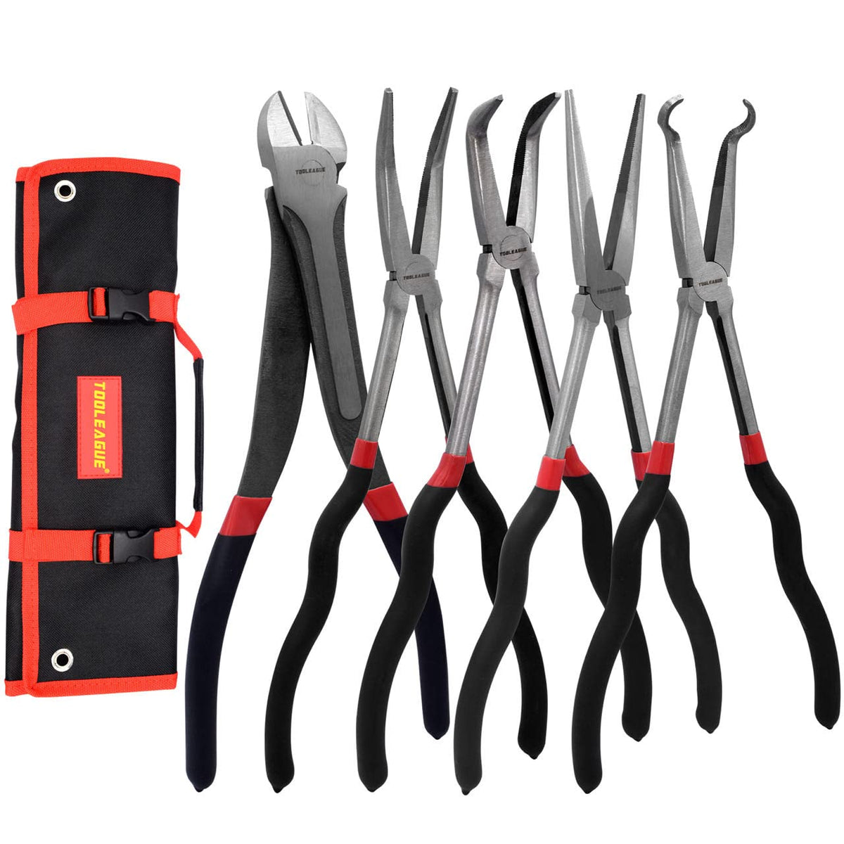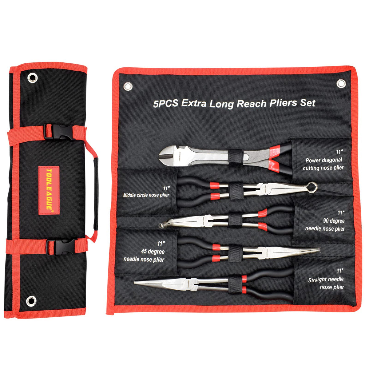 Tooleague 5Pcs Extra Long Needle Nose Pliers Set, 11' Long Reach Straight Pliers,45/90 Degree Bent Nose Pliers,Diagonal Pliers And O-Shape Tip Craft Repairing Tool