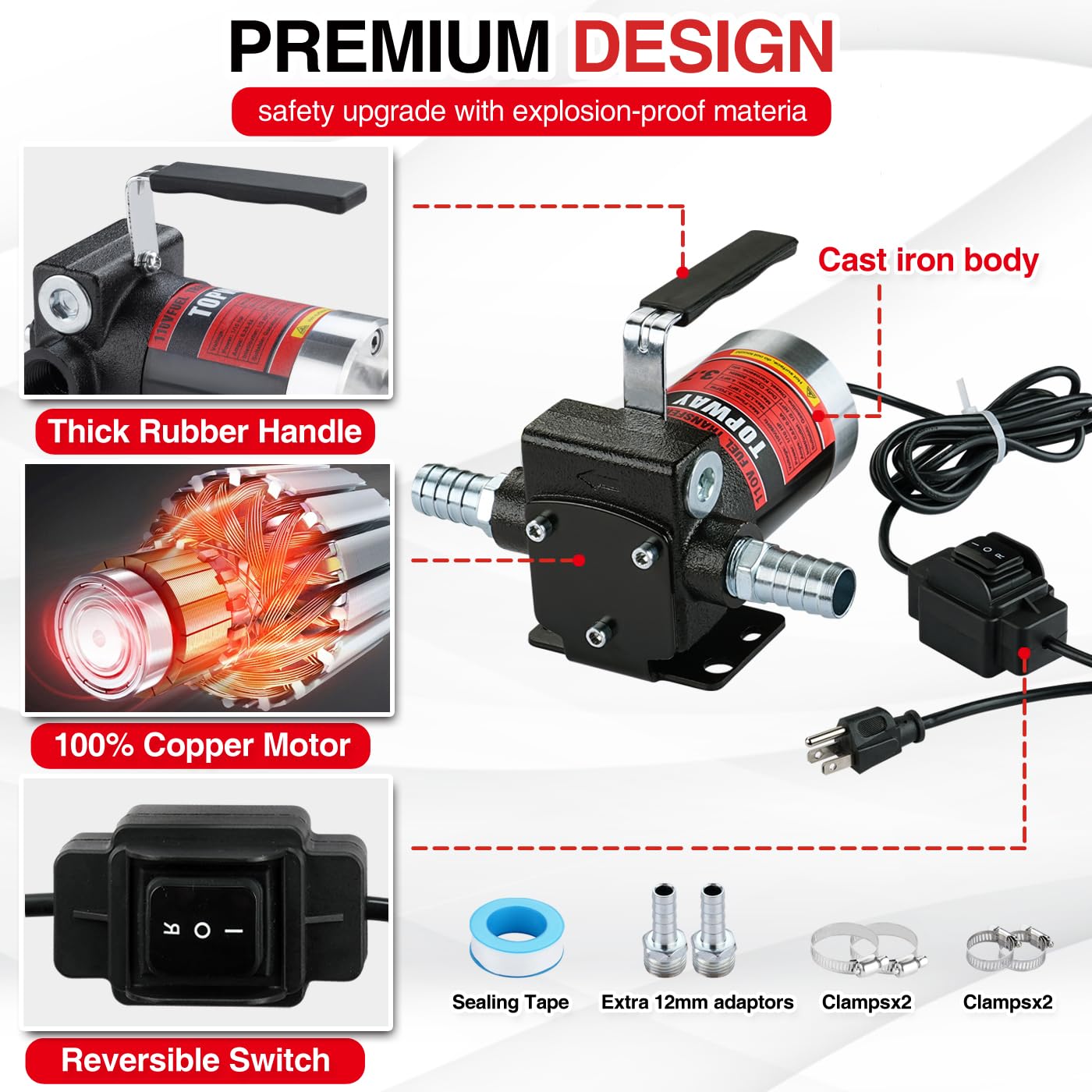 Topway 110V Ac Gasoline Fuel Pump 3.7Gpm Self-Priming Oil Transfer Pump With Handle, Reversible Pumping, Overheat Protection, Ex