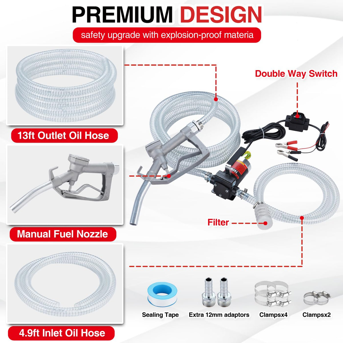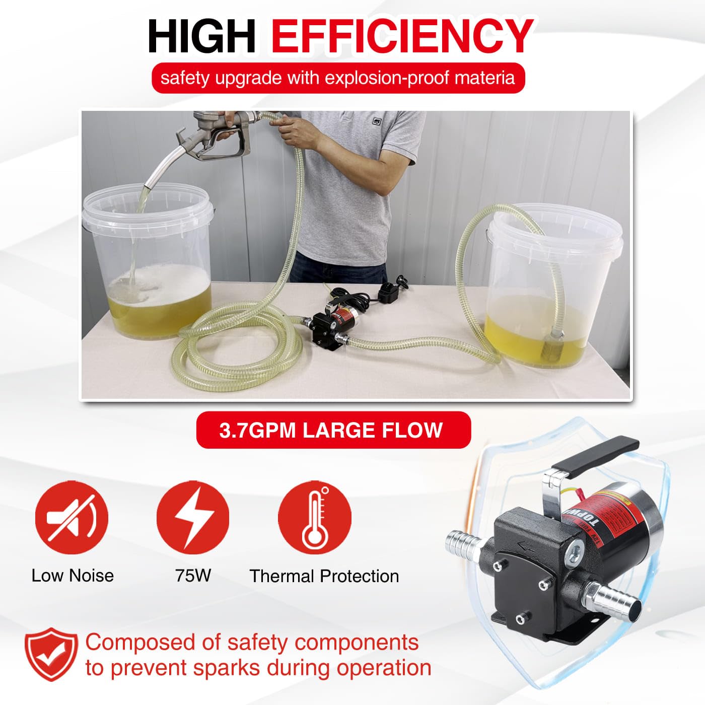 Topway 12V Dc Gasoline Fuel Pump Kit, Self-Priming Oil Transfer Pump With Handle, Reversible Pumping, Overheat Protection, Explo