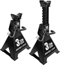 Q: Are these jack stands safe to use for lifting larger vehicles?A: These jack stands are designed for small to medium-sized vehicles, such as most 3 ton autos. They are not recommended for larger pick-up trucks or oversized SUVs due to their weight capacity limitations.