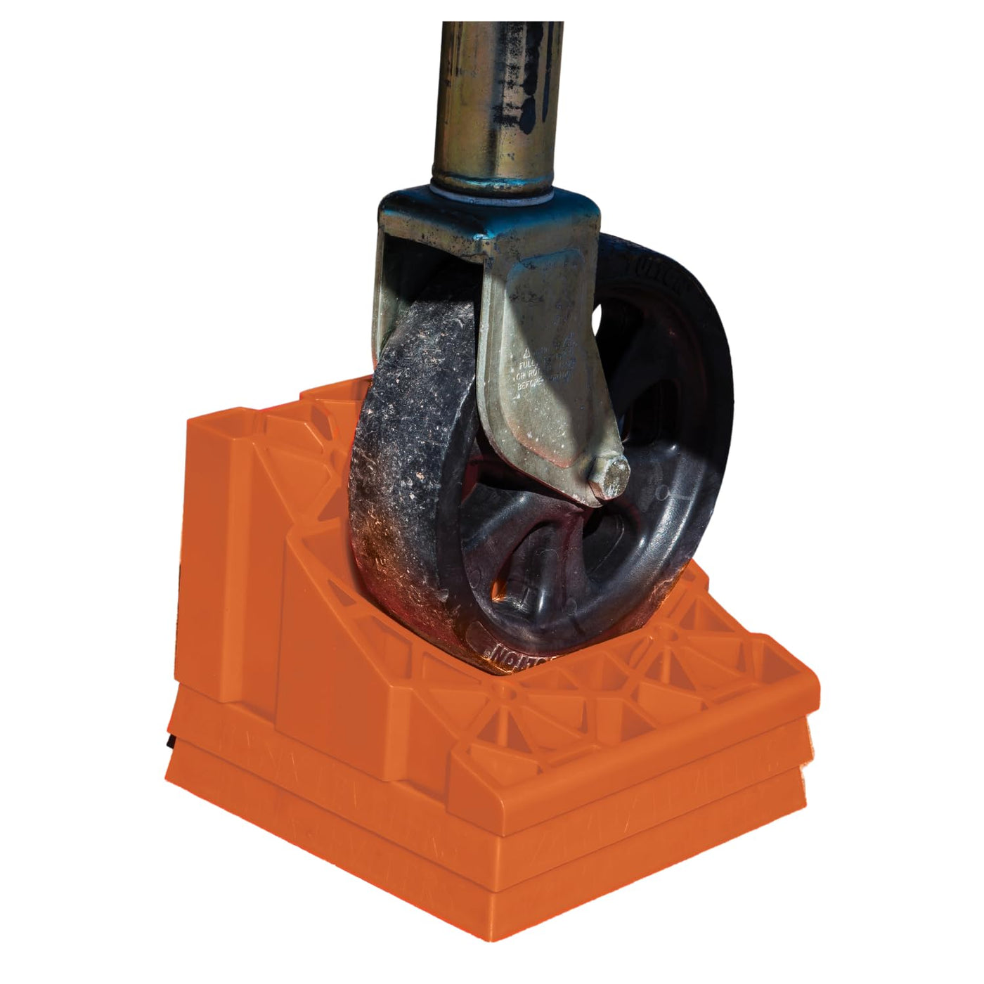 Q: What is the primary use of the Tri-Lynx Chock 'R Dock?A: The Tri-Lynx Chock 'R Dock is primarily used as a safety chock to immobilize tires, ensuring that your vehicle remains stationary. It can also function as a dock when interlocked with Lynx Levelers for optimal leveling support.