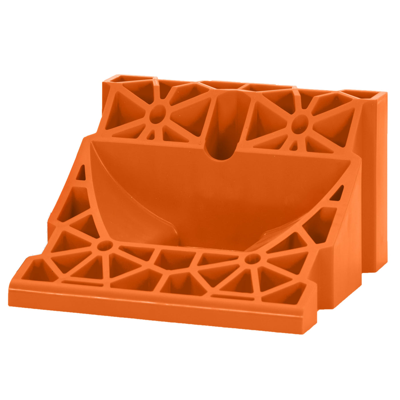 Q: What materials are used in the construction of the Tri-Lynx Chock 'R Dock?A: The Tri-Lynx Chock 'R Dock is made from high-grade plastic with a porous design, ensuring durability and the ability to withstand significant weight without compromising its functionality.