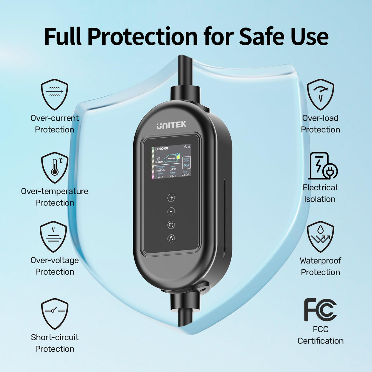 Unitek 40A 9.6KW Tesla Home Charger -Auto Sensing Level 2 Portable Tesla Wall Charger,240V Mobile Charger Connector for Tesla, E