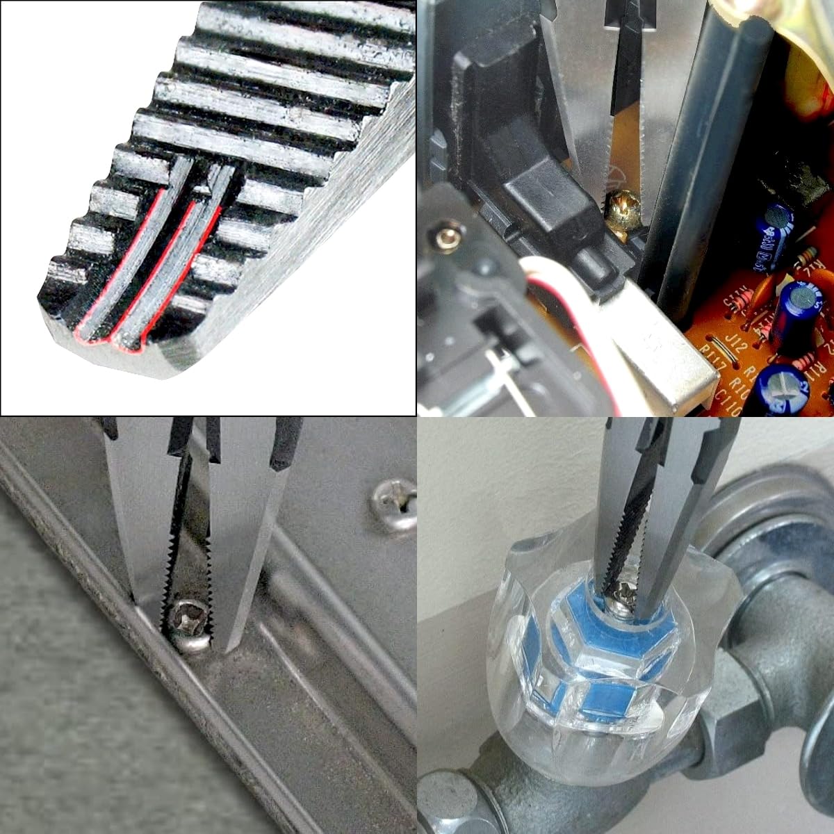 Q: Is the VAMPLIERS suitable for use in confined spaces?A: Yes, the long nose design of the VAMPLIERS makes them ideal for extracting screws in confined areas and hard-to-reach spaces, making them a perfect tool for electricians, mechanics, and home improvement projects.