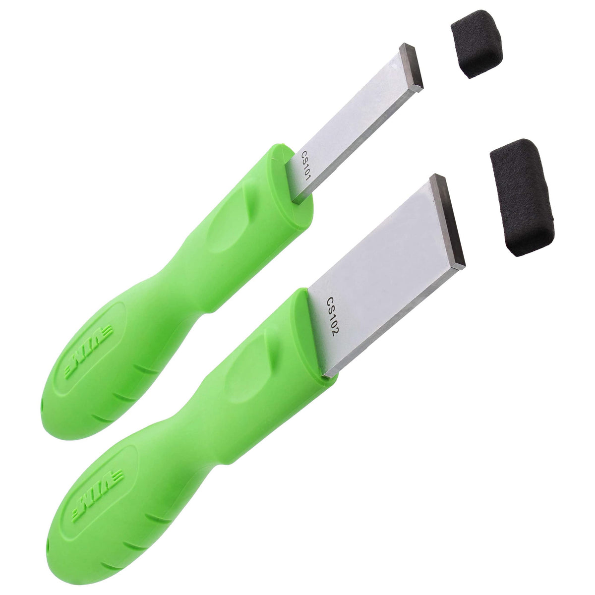 Vim Tools Carbide Scraper Tool Set - 2Pc Large And Small Automotive Gasket Scraper Blades Molded In Green Handles