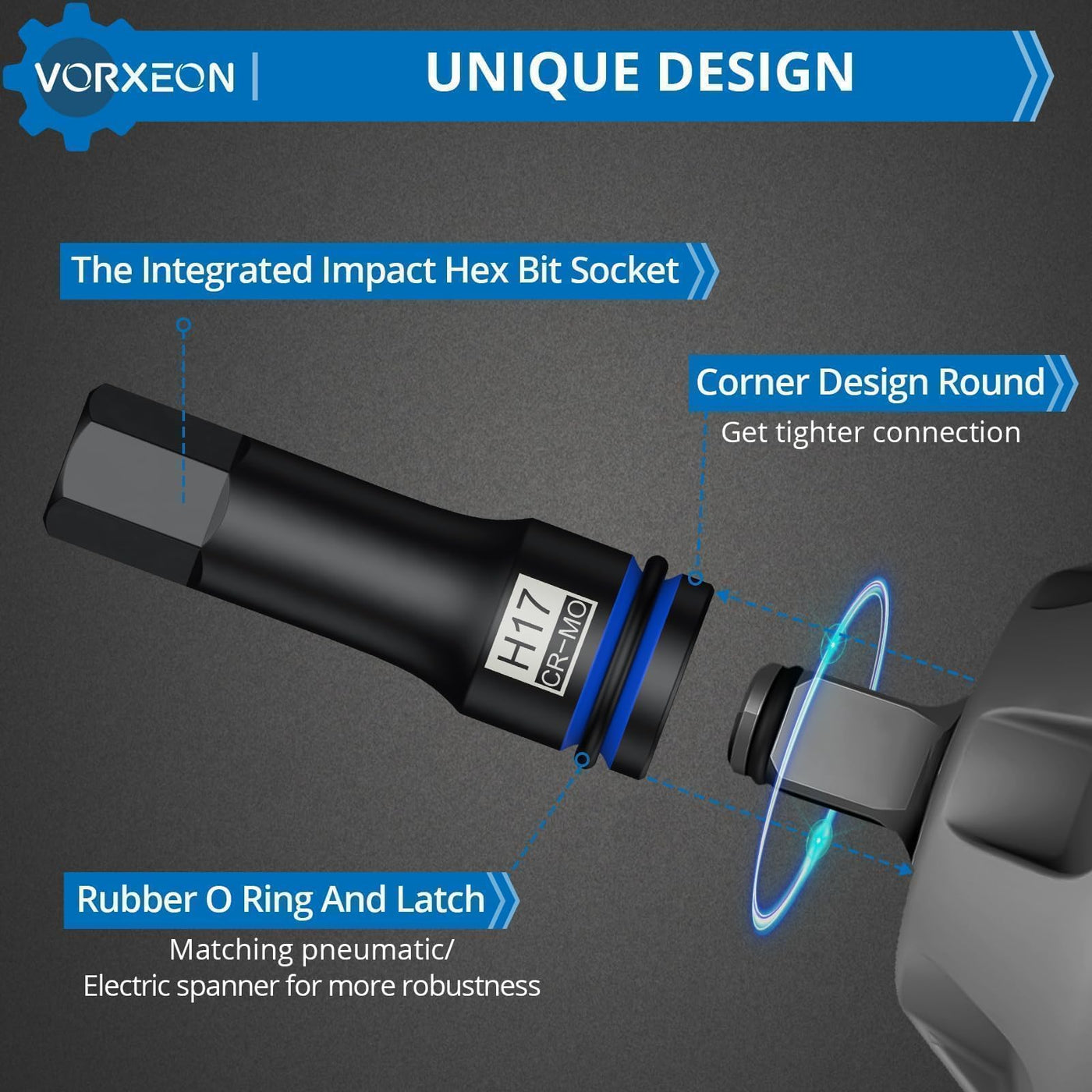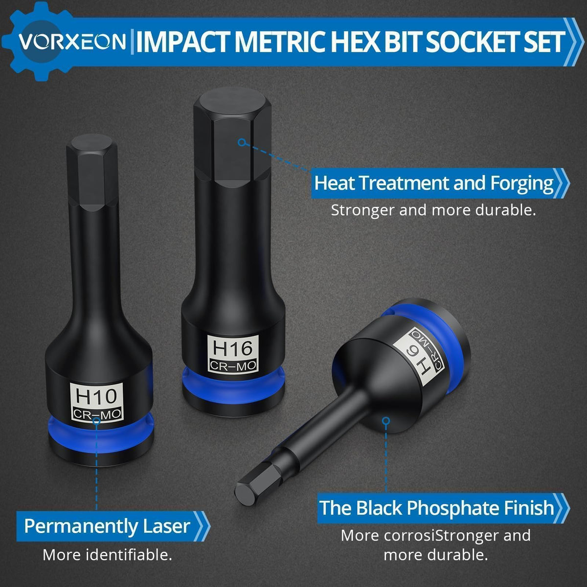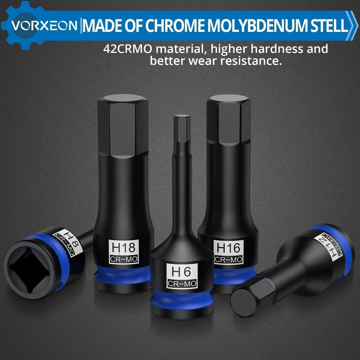 Upgrade your toolkit with the VORXEON 10-piece 1/2' drive metric impact allen bit socket set.