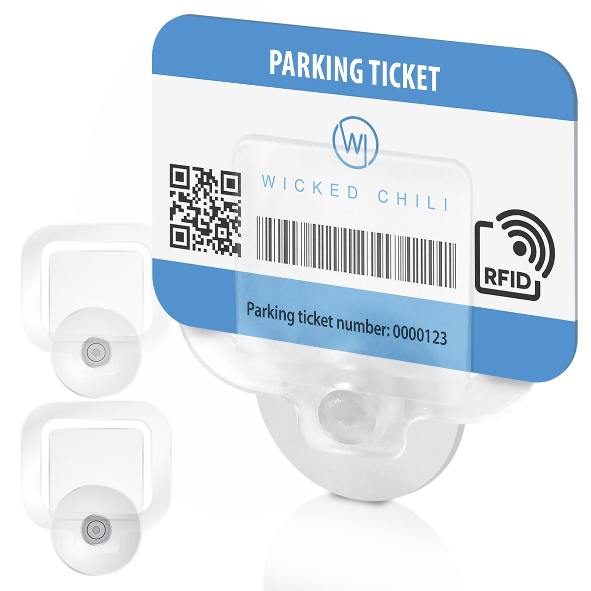 Wicked Chili 2X Parking Permit, Ticket And Note Holder For Car Windscreen, Clips With Removable Suction Cup, Avoid Parking Fine, Set Of 2 (Made In Germany) Transparent