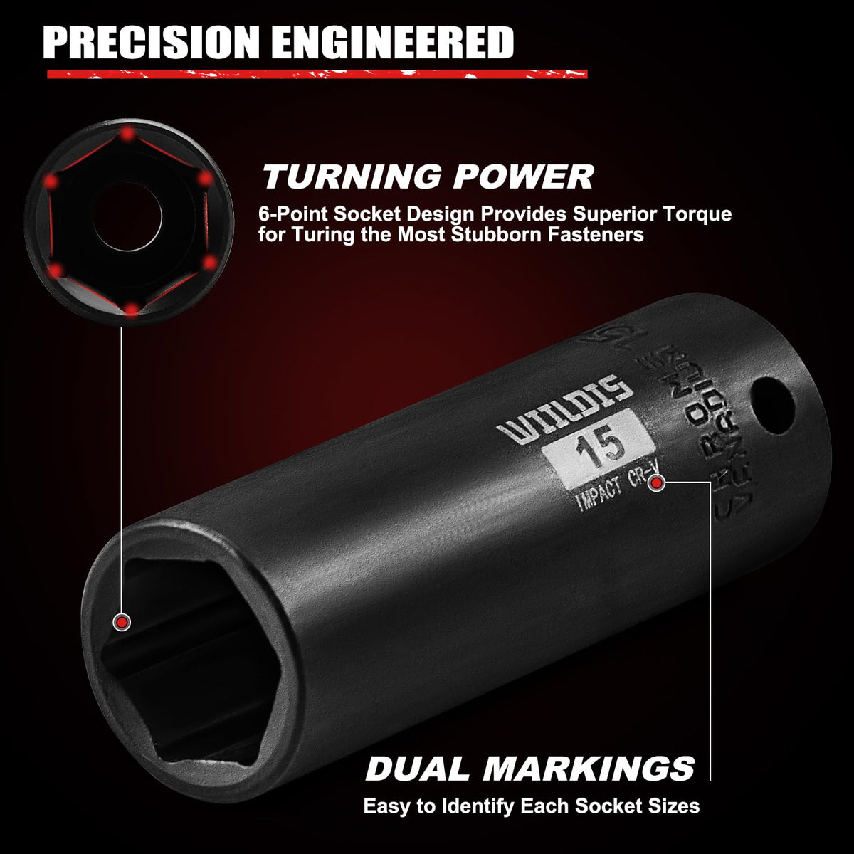 Q: How does the 6 point socket design benefit users?A: The 6 point socket design expands the contact surface between the socket and the fastener, allowing for maximum torque. This design reduces wear and prevents rounding off at corners, making it ideal for heavy-duty applications.