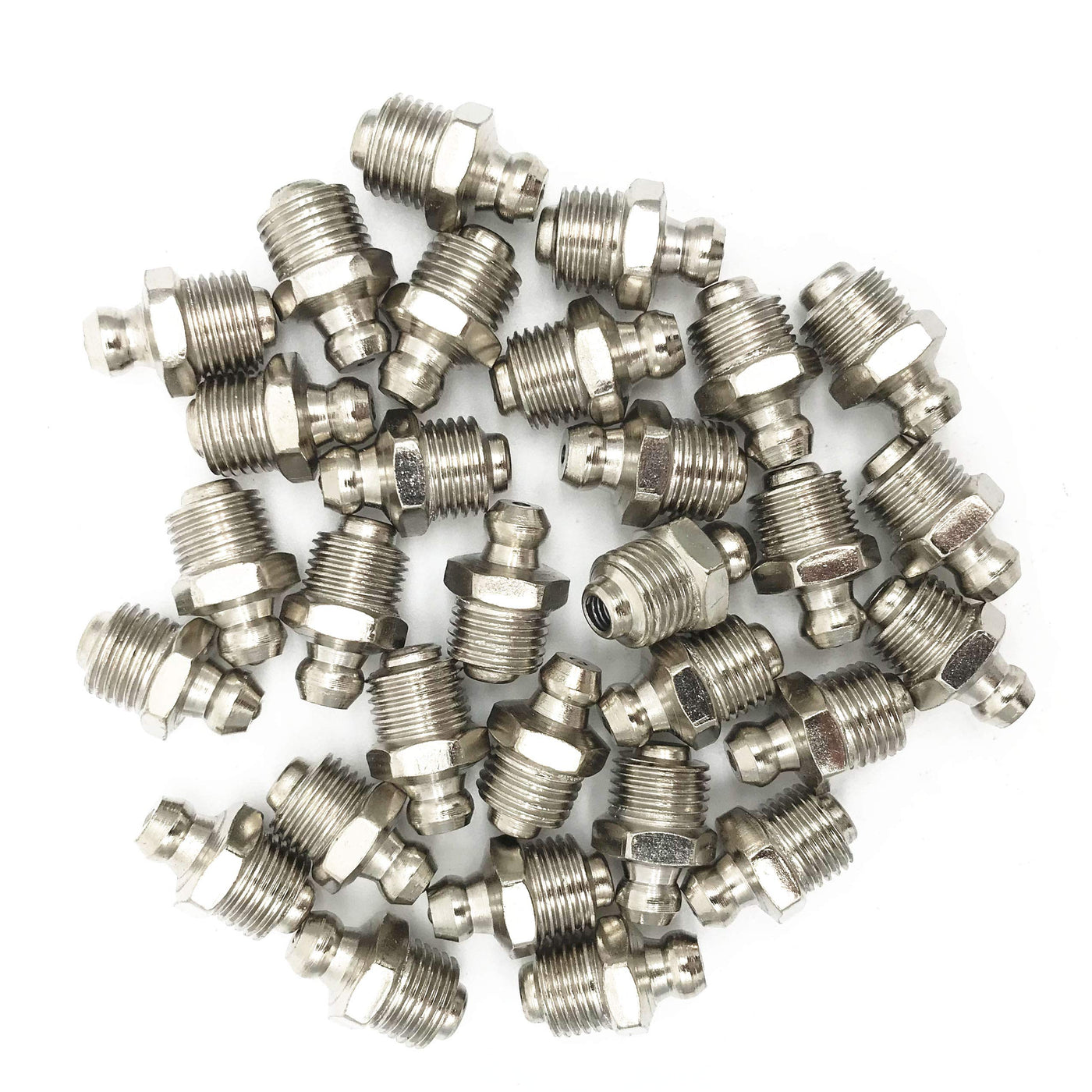 Xmhf Silver Tone M8 5/16 Male Thread Straight Grease Nipple Zerk Fitting Nozzle 30Pcs