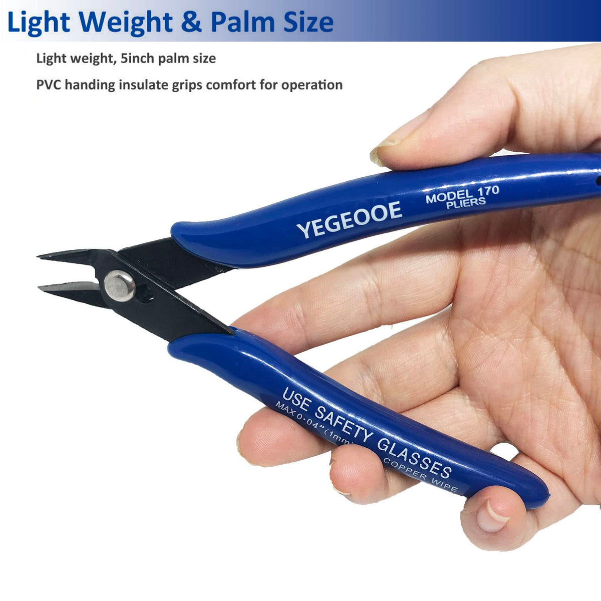 Q: What is the size and weight of the YEGEOOE Small Wire Cutters?A: The YEGEOOE Small Wire Cutters are 5 inches in length and come in a pack of 10. Each cutter weighs approximately 0.13 lbs, making them lightweight and easy to handle.