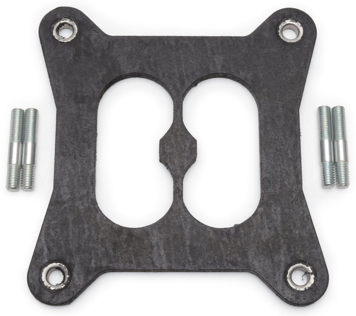 The Edelbrock Heat Insulator Gasket is designed to prevent fuel percolation in Performer Series and Thunder Series AVS carburetors exposed to extreme underwood temperatures. This is a 4-barrel gasket, which is made up of a nitrile rubber composite. It has a 2-hole divided center and is 0. 320 inch in thickness. This gasket comes with extended carburetor studs.
