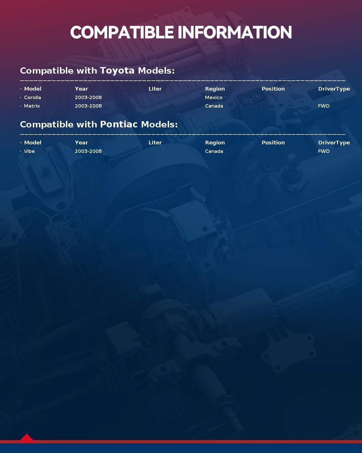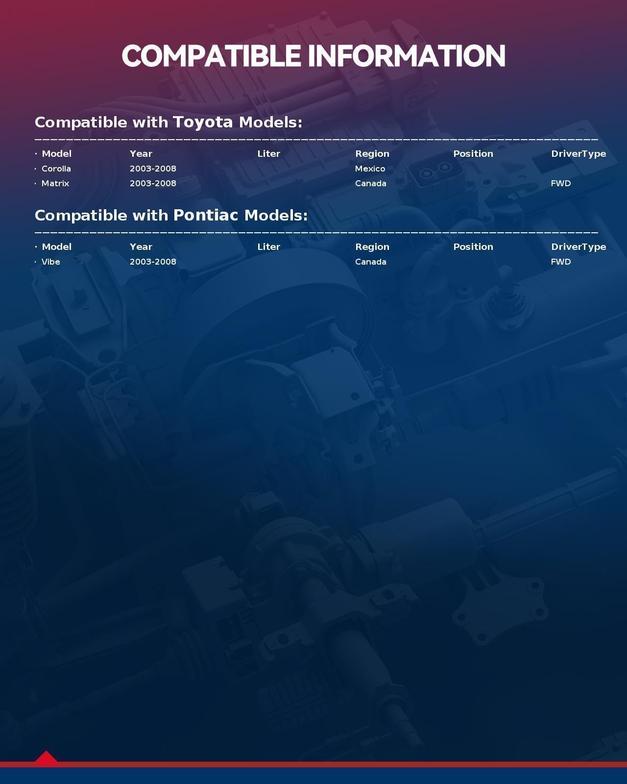 [WIDE COMPATIBILITY] --- Catalytic converter replacement for 2003-2008 Corolla Matrix 1.8L 2003-2008 Pontiac Vibe . These free-flow Catalytic converters have bolt-on connections and flange to flange design for effortless installation. Catalytic converter | [HIGH FLOW PERFORMANCE ] --- Our catalytic converters are built to meet OEM specifications and have EPA certification. They also feature a high flow design to increase conversion efficiency and vehicle power without sacrificing flow rate. | [STAINLESS STEEL OUT SHELL] --- The high flow catalytic converters with heavy-duty stainless steel construction feature maximum durability. Firmly welded connections can withstand high temper and pressures for longer service life. | [FLANGE TO FLANGE DESIGN] --- These free-flow catalytic converters have bolt-on connections and flange to flange design for effortless installation. They're also complete with full accessories as gaskets and hardware, facilitating your replacement. | [COMPLIANCE WITH OBD III] --- The direct-fit catalytic converters are compliant with OBD III Standards but not with CARB. Thus, they can be used in most states except California& New York, not legal for use on vehicles required to meet CA emission standards.