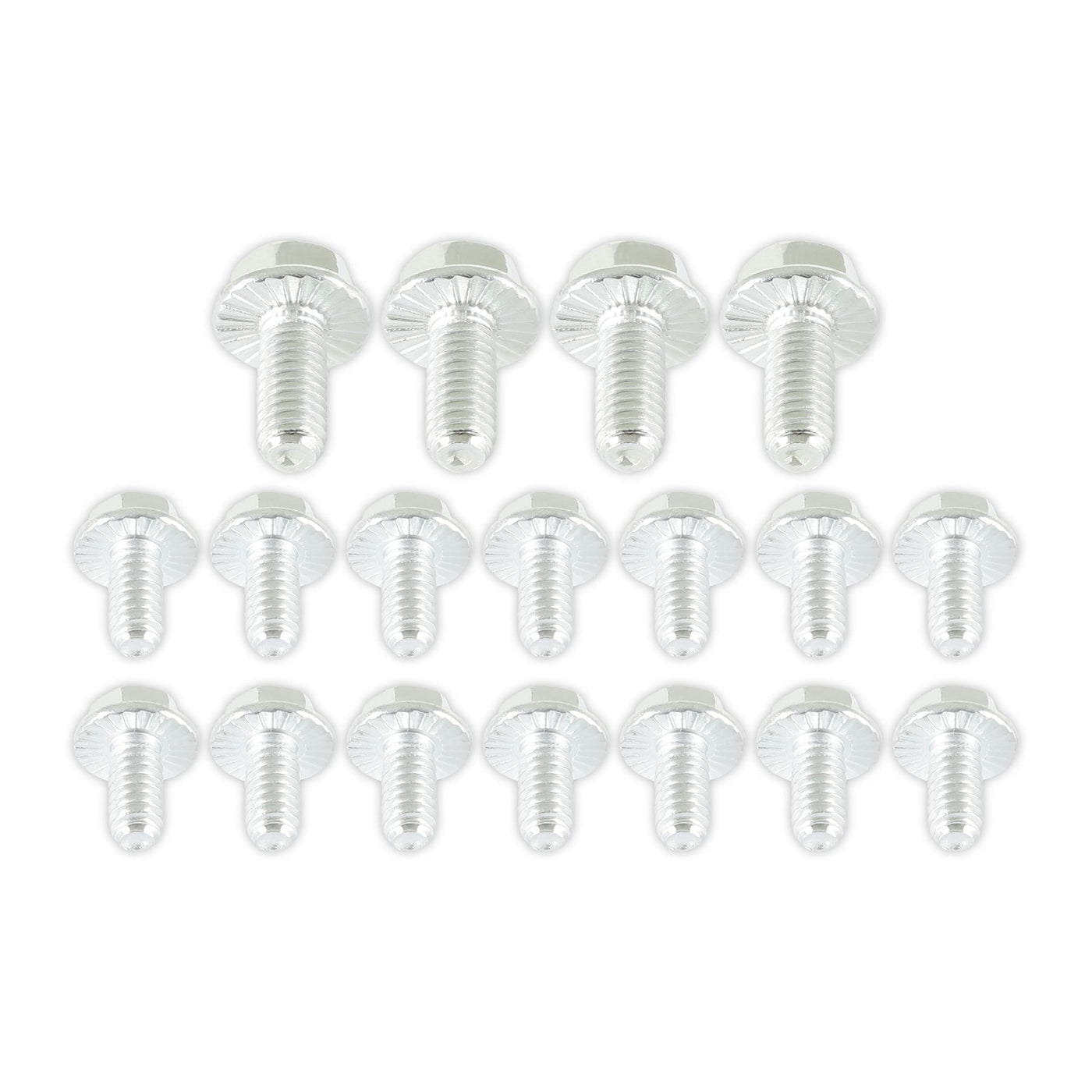 - Q: How many bolts are included in the Mr. Gasket 6085 kit? A: The kit contains a total of eighteen bolts. This includes fourteen one quarter inch by one half inch bolts and four five sixteenths inch by three quarters inch bolts.