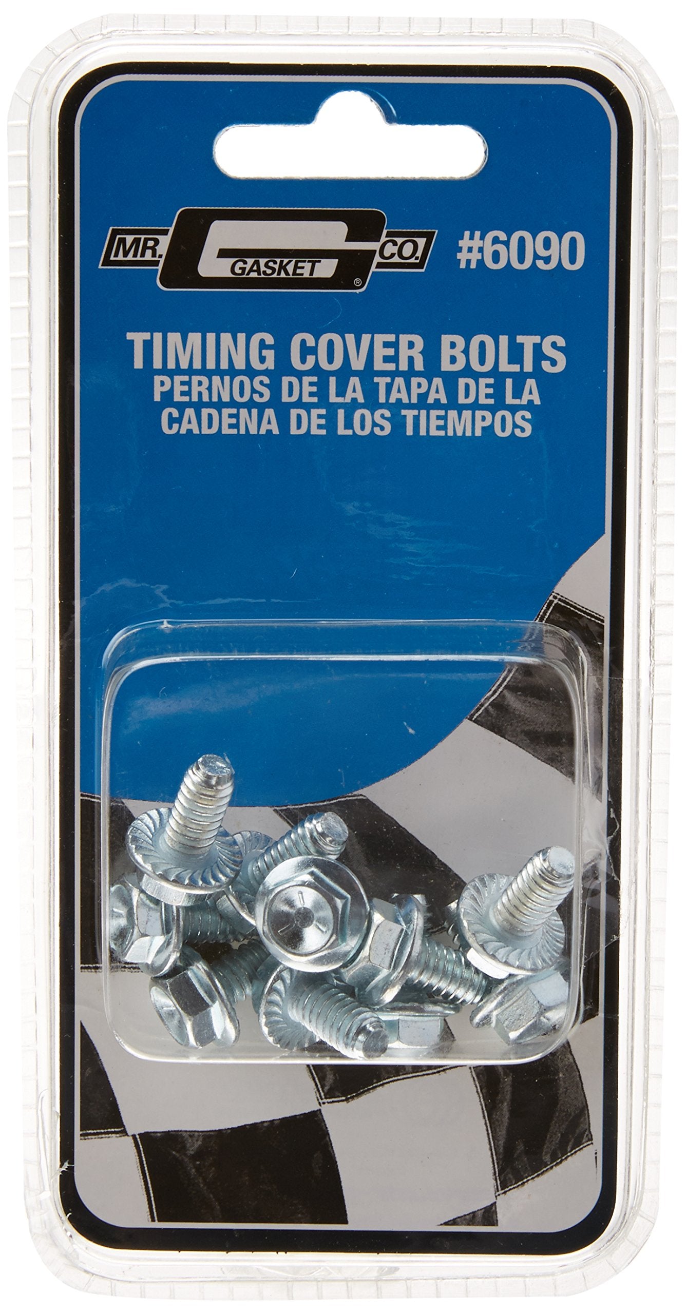 Q: What is the purpose of the Mr. Gasket 6090 Timing Cover Bolt?A: The Mr. Gasket 6090 Timing Cover Bolt is designed to securely fasten the timing cover to your engine, ensuring a proper seal and preventing oil leaks, which is crucial for maintaining engine performance.