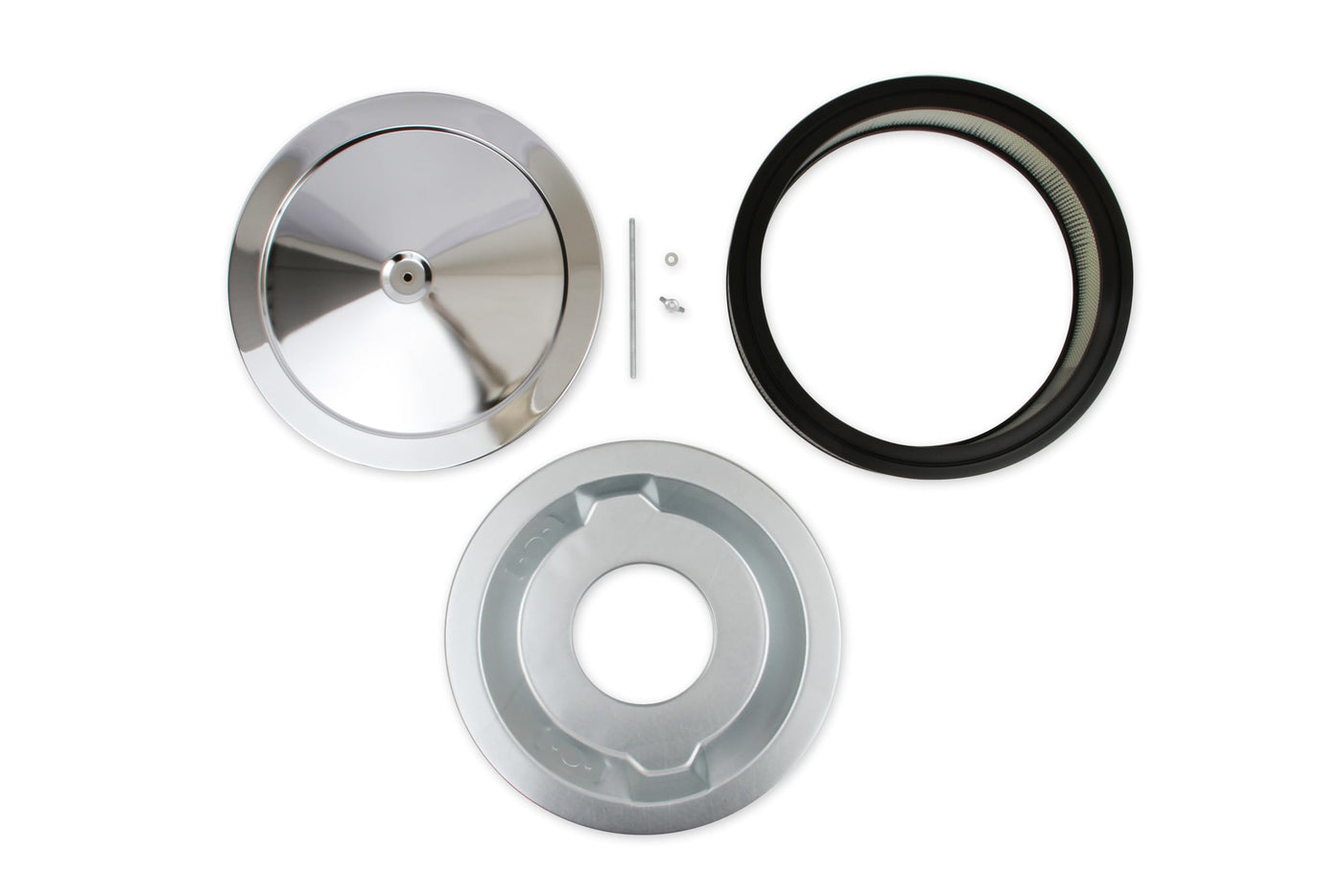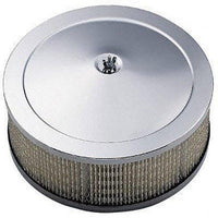 This original equipment-style air cleaner features a deep-dish and highly polished chrome top accented by a chrome-plated wing nut. It features a classic designed top and comes with a gasket and hardware. A flame retardant, replaceable paper element with a high CFM rating is used in these units for safety. This air cleaner is sold individually.