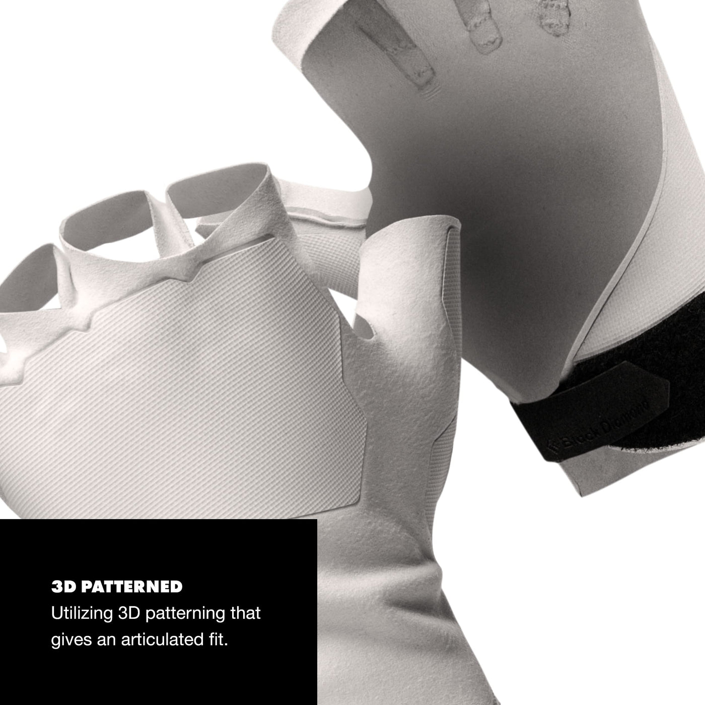 Q: What makes the BLACK DIAMOND Crack Gloves suitable for crack climbing?A: The BLACK DIAMOND Crack Gloves feature a 3D patterning design that provides an articulated fit, maximizing dexterity and grip, which are crucial for effective crack climbing. The synthetic suede material ensures maximum abrasion resistance while remaining breathable, allowing for superior performance in demanding environments.