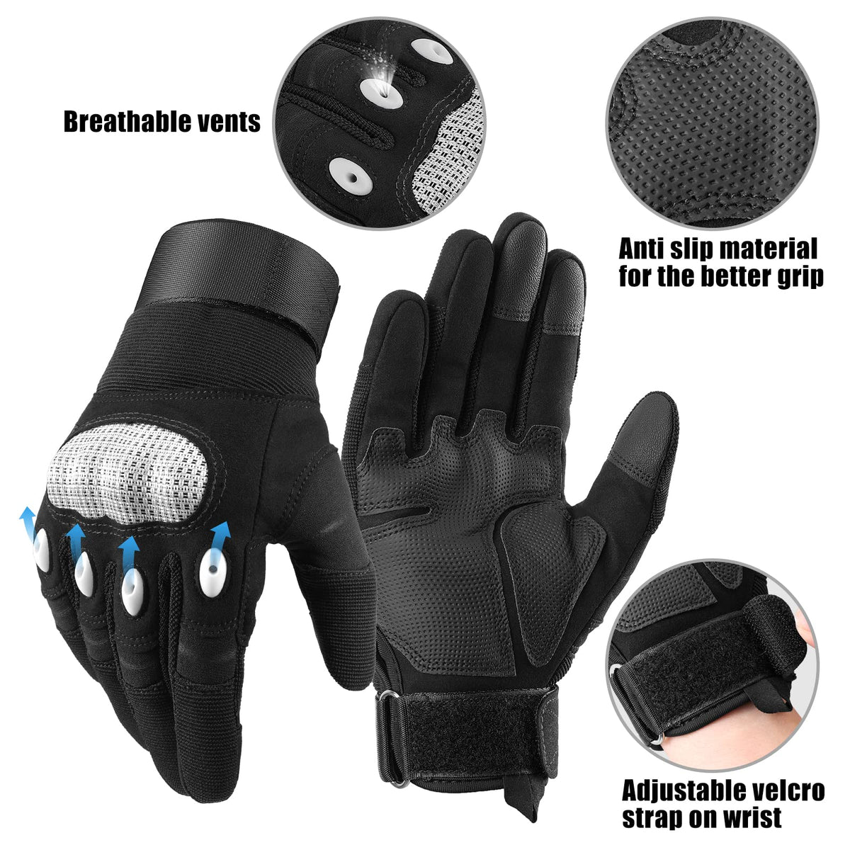 Cierto Motorcycle Gloves For Men And Women: Touch Screen Full Finger Breathable Hard Knuckle Tactical Glove With Adjustable Wris