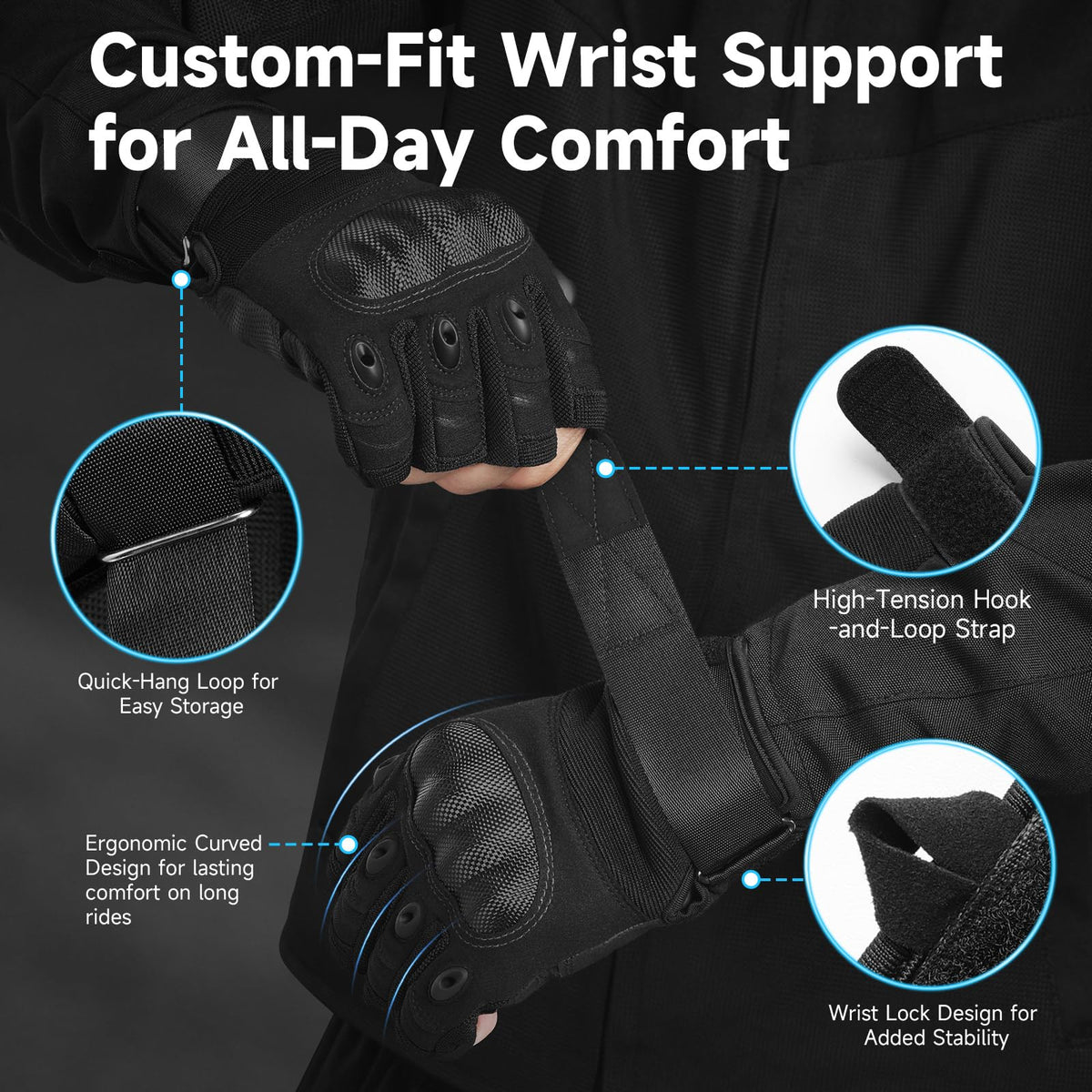 Cierto Tactical Gloves For Men And Women: Fingerless Motorcycle Gloves With Adjustable Wrist For Outdoor Riding, Road Racing, Cy