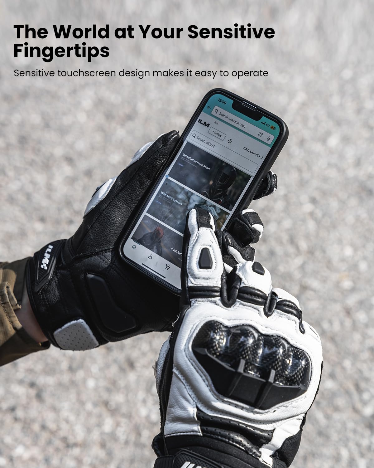 Ilm Air Flow Leather Motorcycle Gloves For Men And Women Model-Grc01L (L, White-Long)